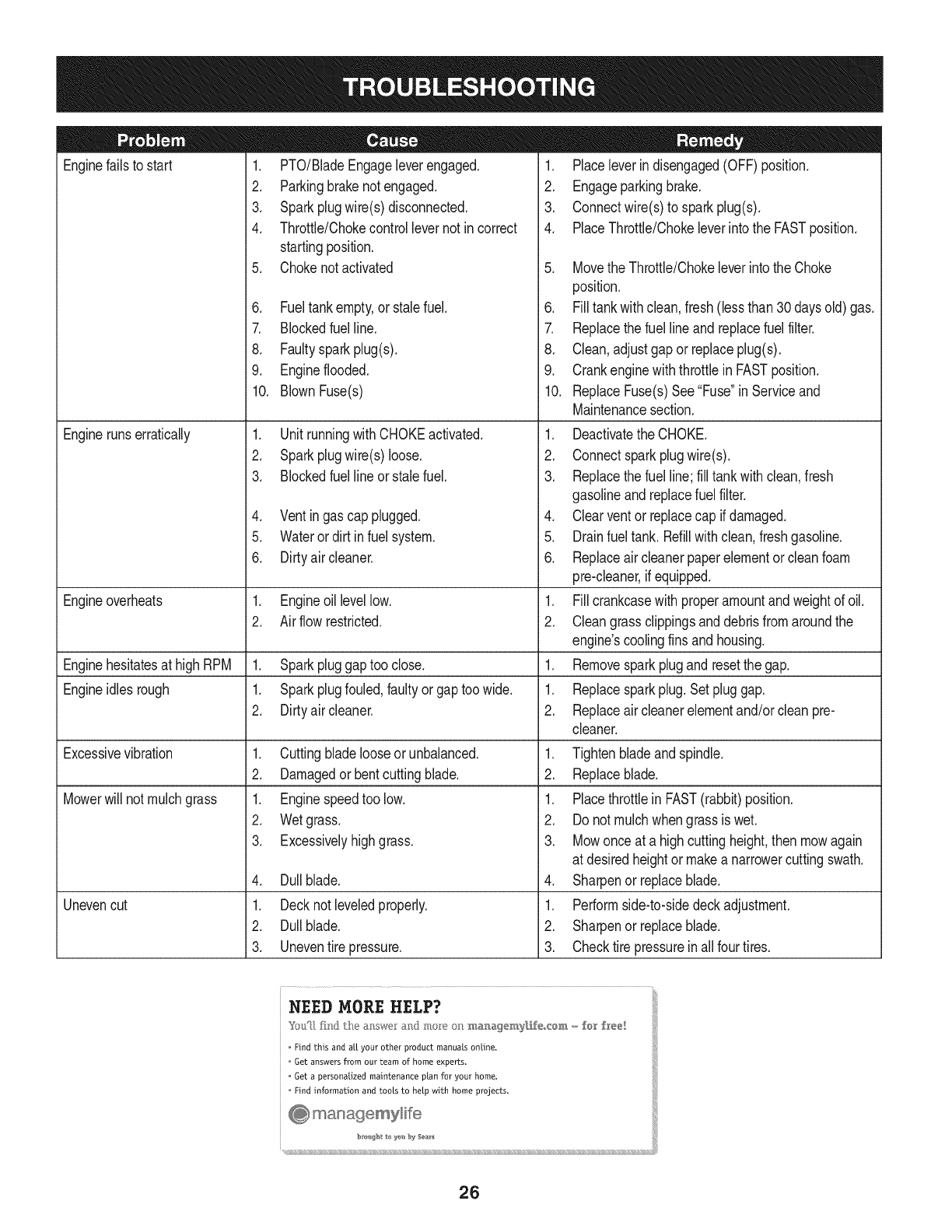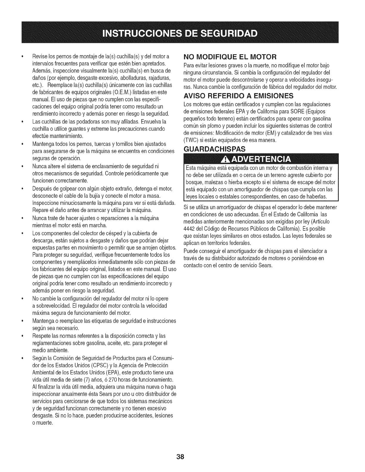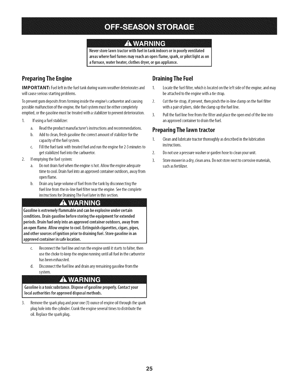 storage,failureto usethe propergradeandamountof engineoil, failureto keepthe deckclearof flammabledebris,orfailureto maintainthe