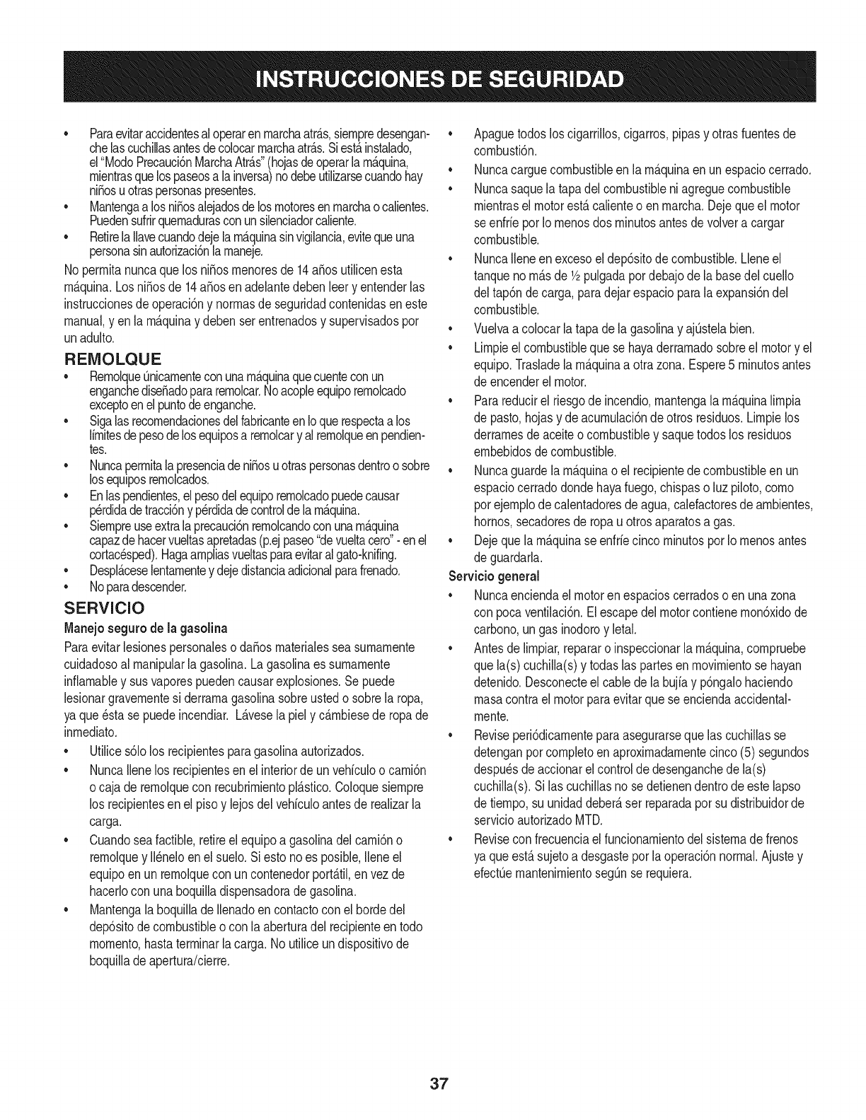 tal cobertura de garantia si MTD Consumer Group Inc demuestra que el motor es objeto de uso incorrecto, negligencia o mantenimiento