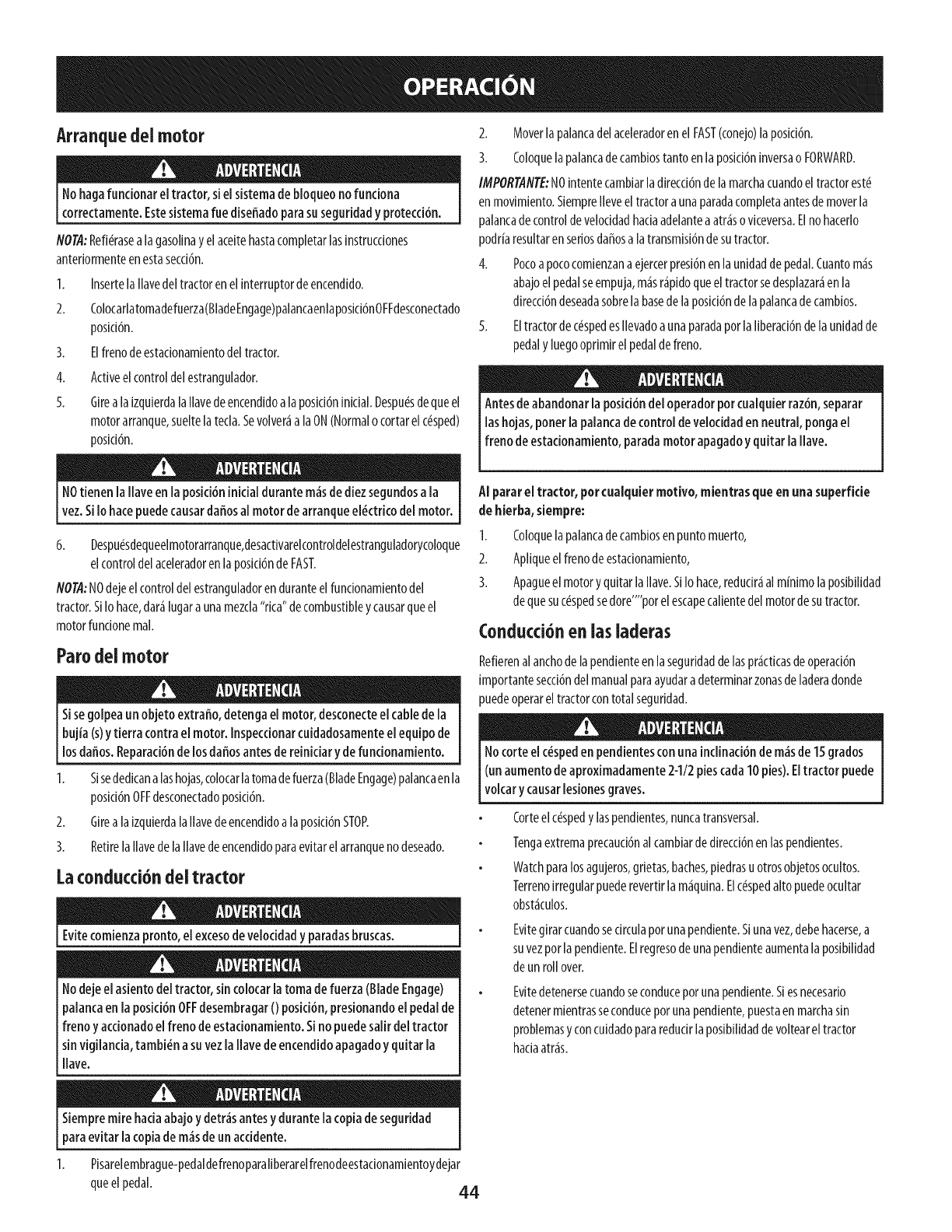ridingequipmentaccordingto the instructionscontainedin theoperator'smanual.