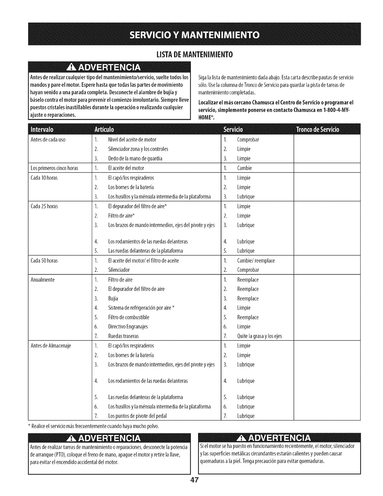 pieza. Si la pieza falla antes del primer reemplazo programado, la misma ser_i reparada o reemplazada pot MTD Consumer Group Inc. de
