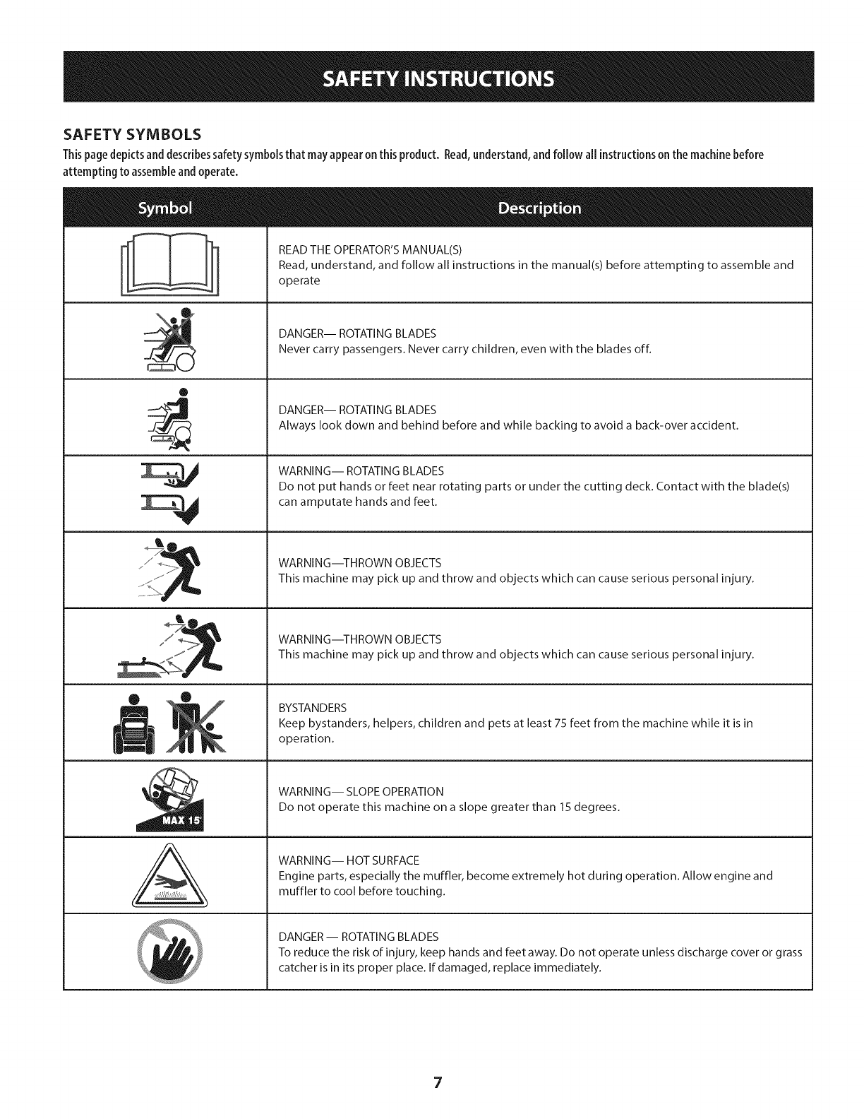 throwingdebris.Failureto observethefollowing safety instructionscould