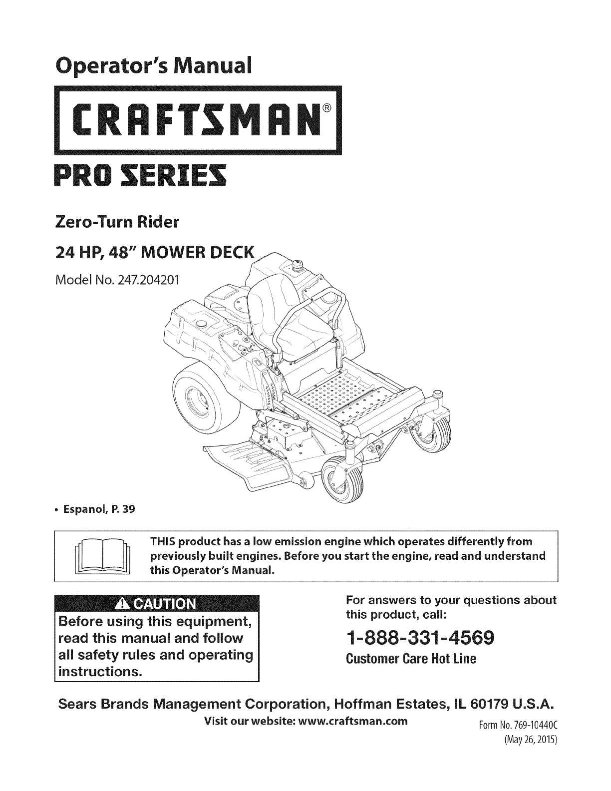 User Manual: Craftsman 247204201 247204201 CRAFTSMAN ZERO TURN RIDING MOWER - Manuals and Guides View the owners manual for your CRAFTSMAN ZERO TURN RIDING MOWER #247204201. Home:Lawn & Garden Parts:Craftsman Parts:Craftsman ZERO TURN RIDING MOWER Manual