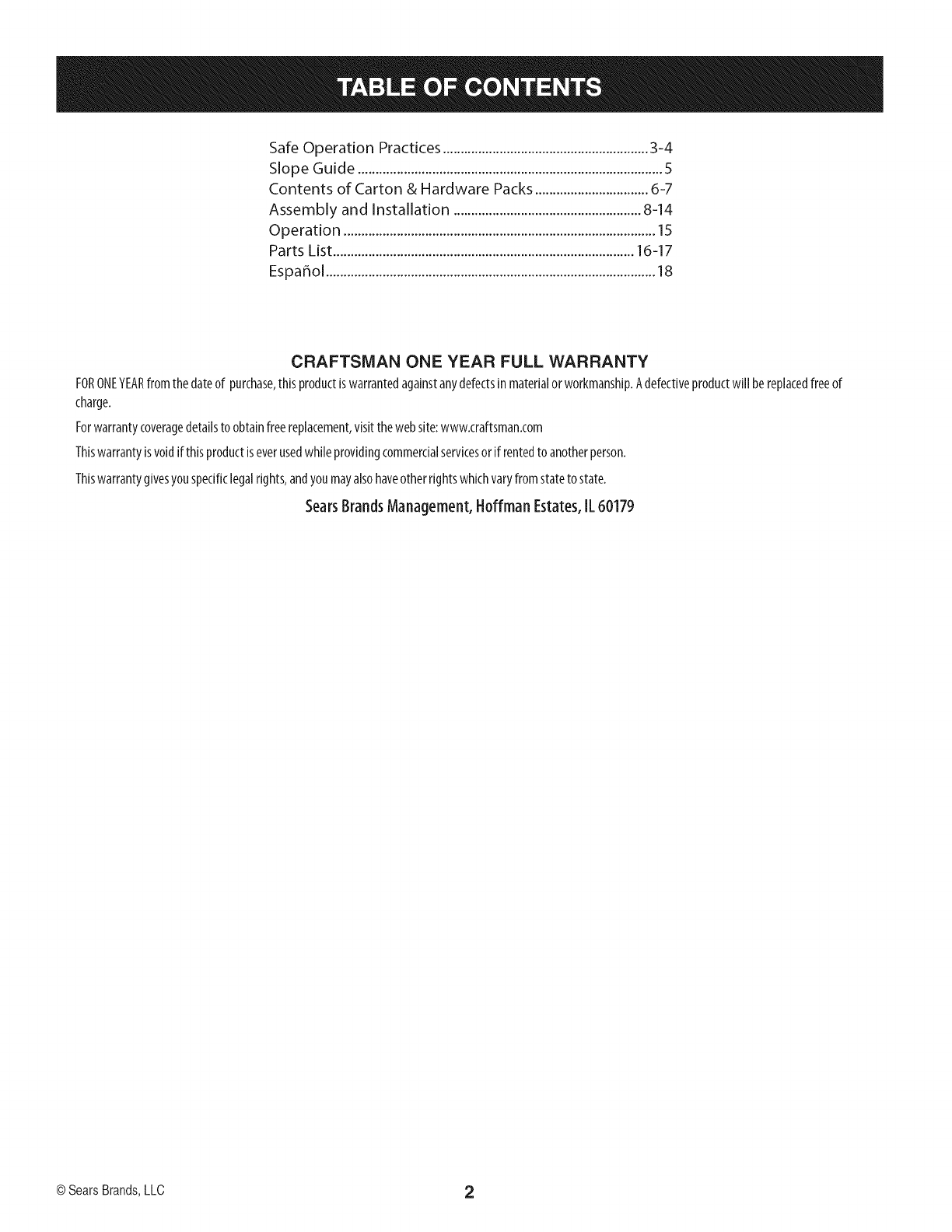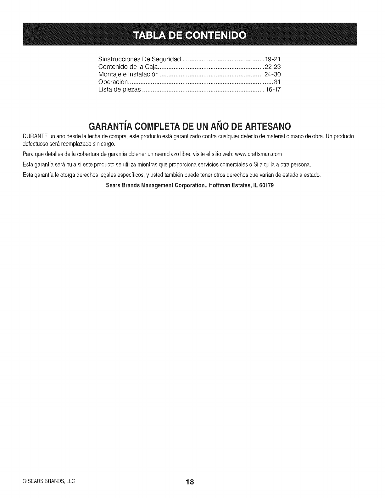 CRAFTSMAN ONE YEAR FULL WARRANTY