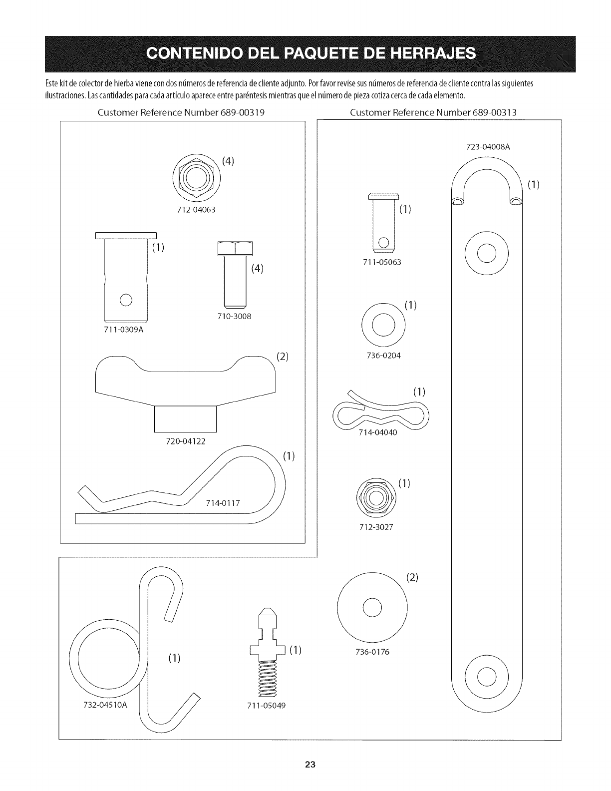 laarandela(736-0204)y pajaritapasador(714-04040)del paquetede