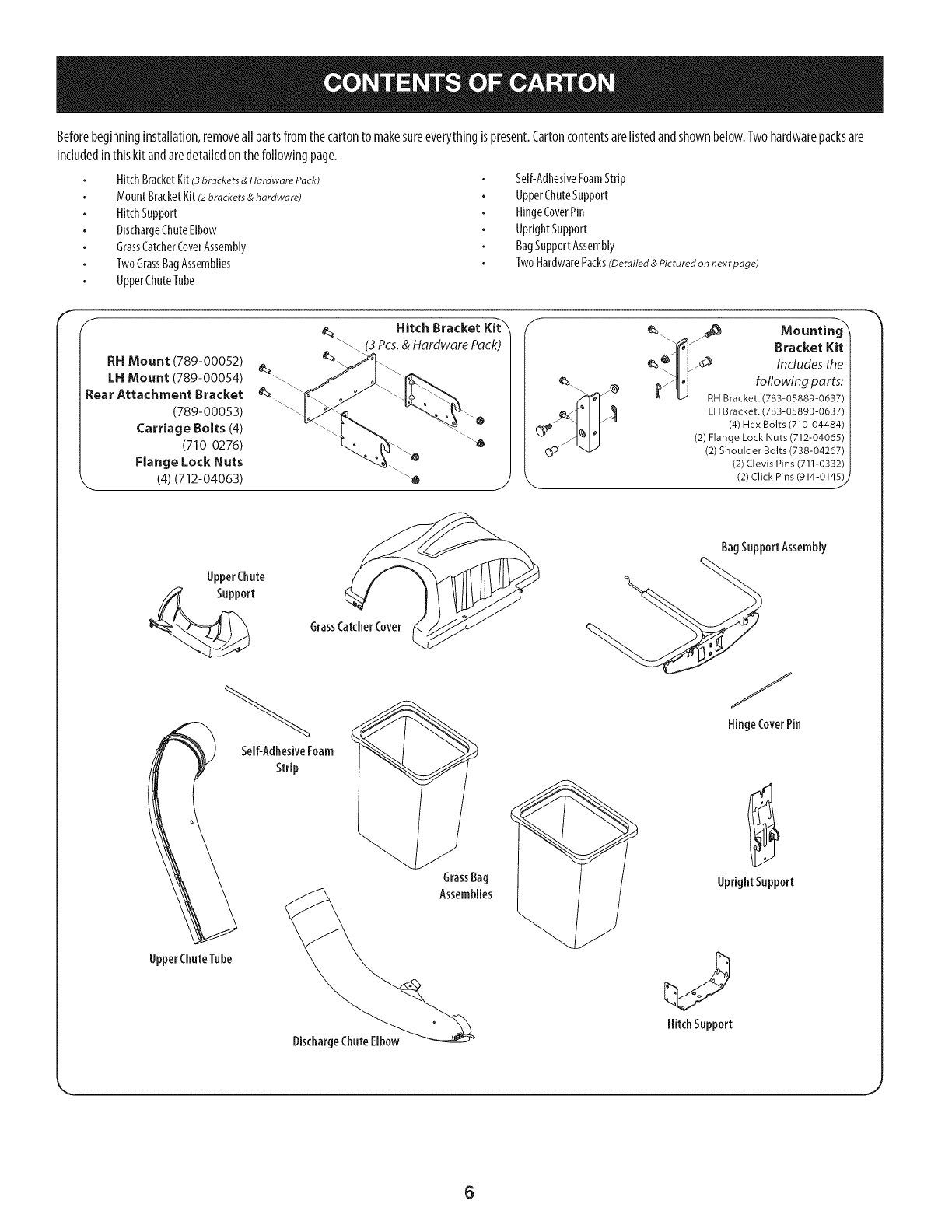Contents of Carton & Hardware Packs ................................6-7