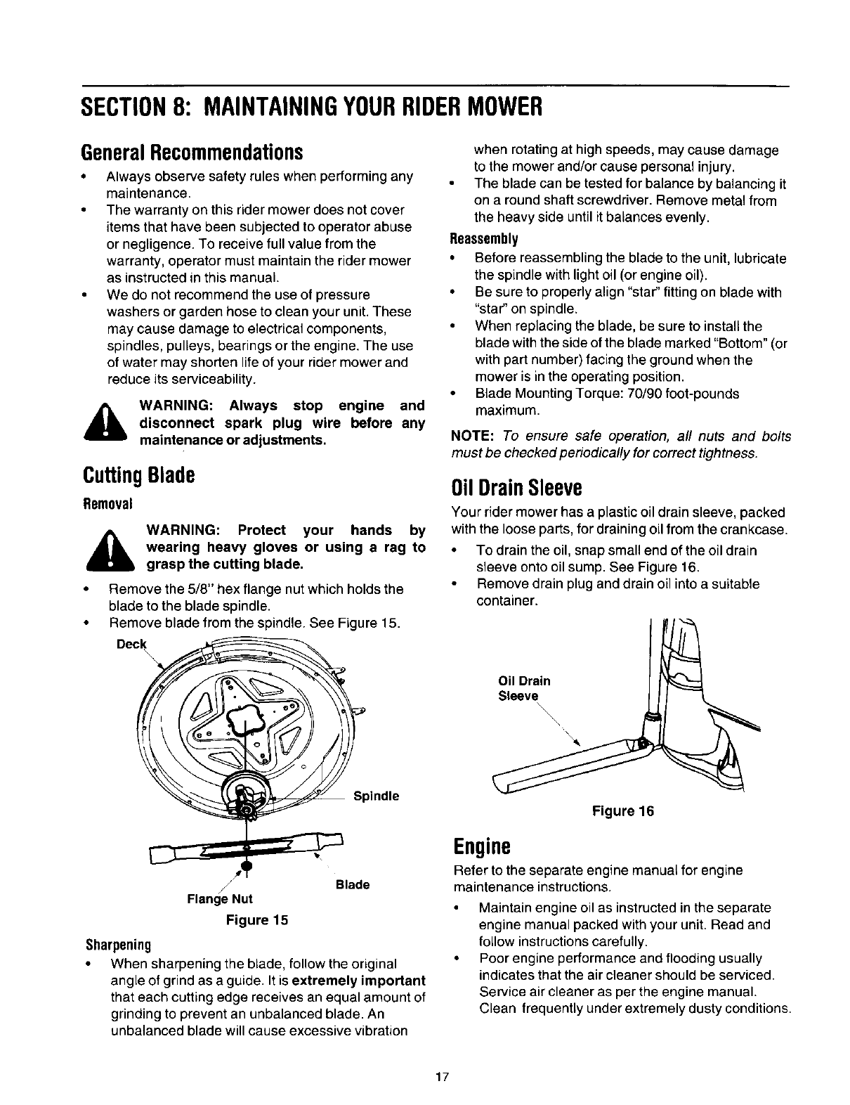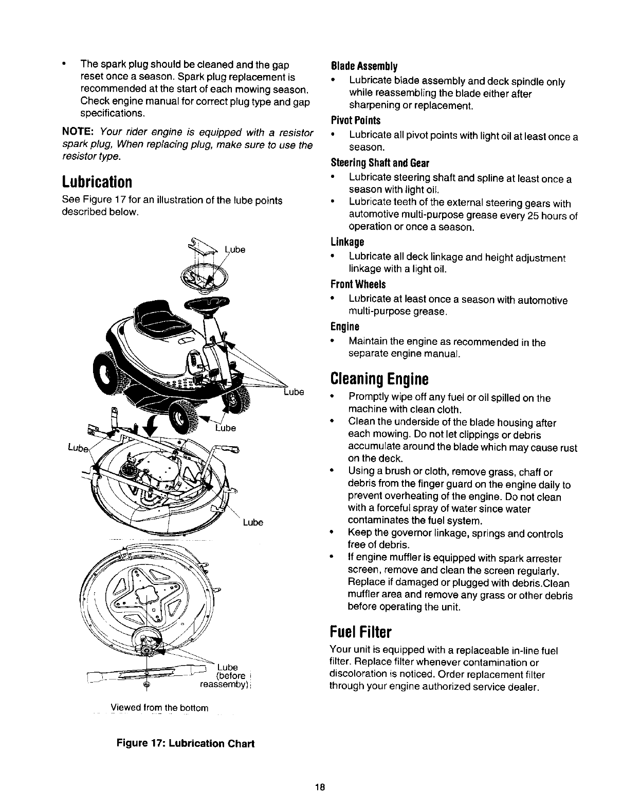 Maintaining Your Riding Mower ......................................................................... 17