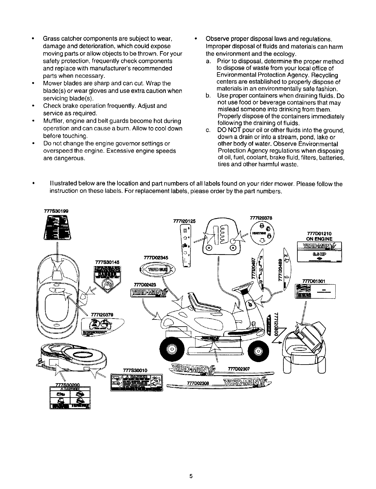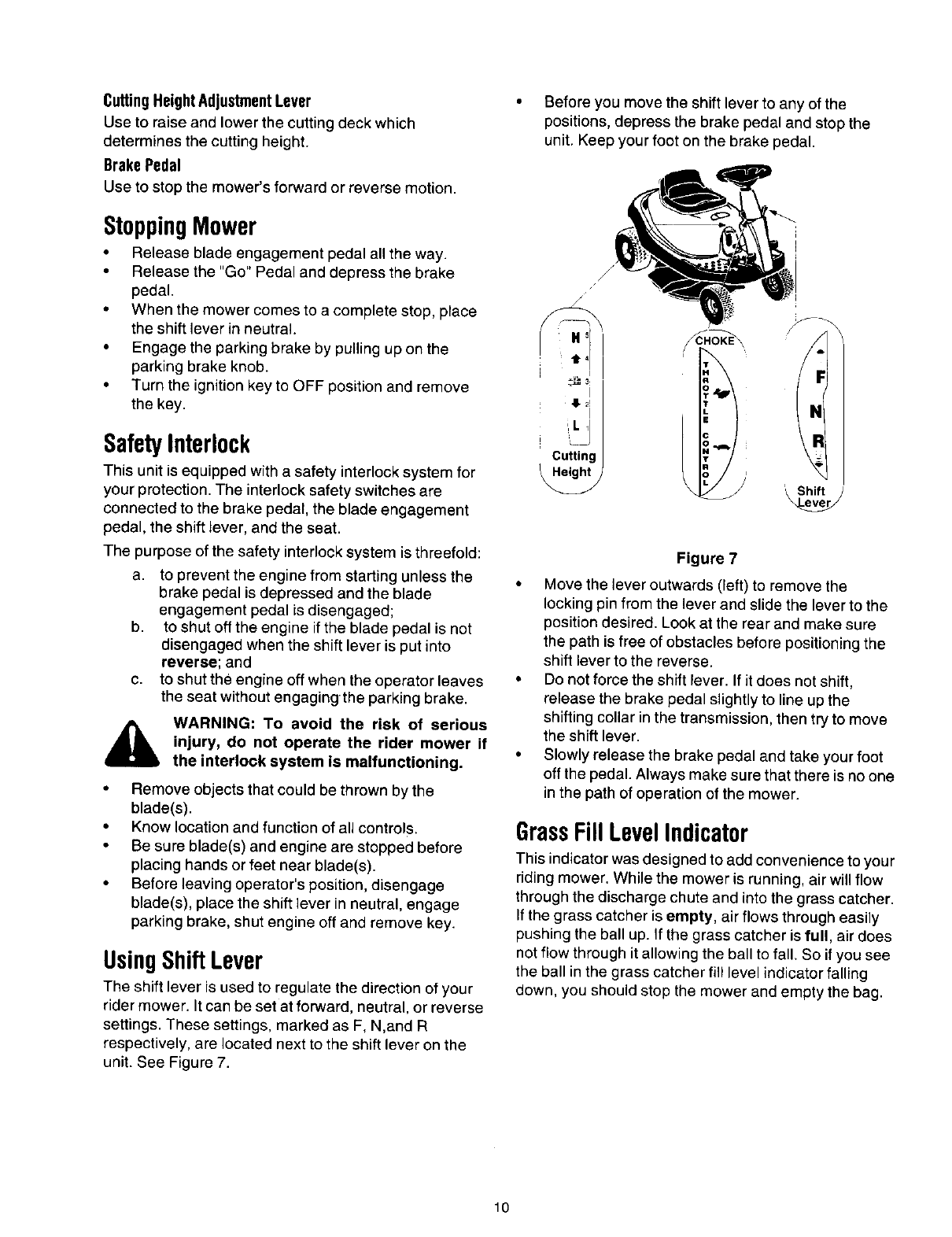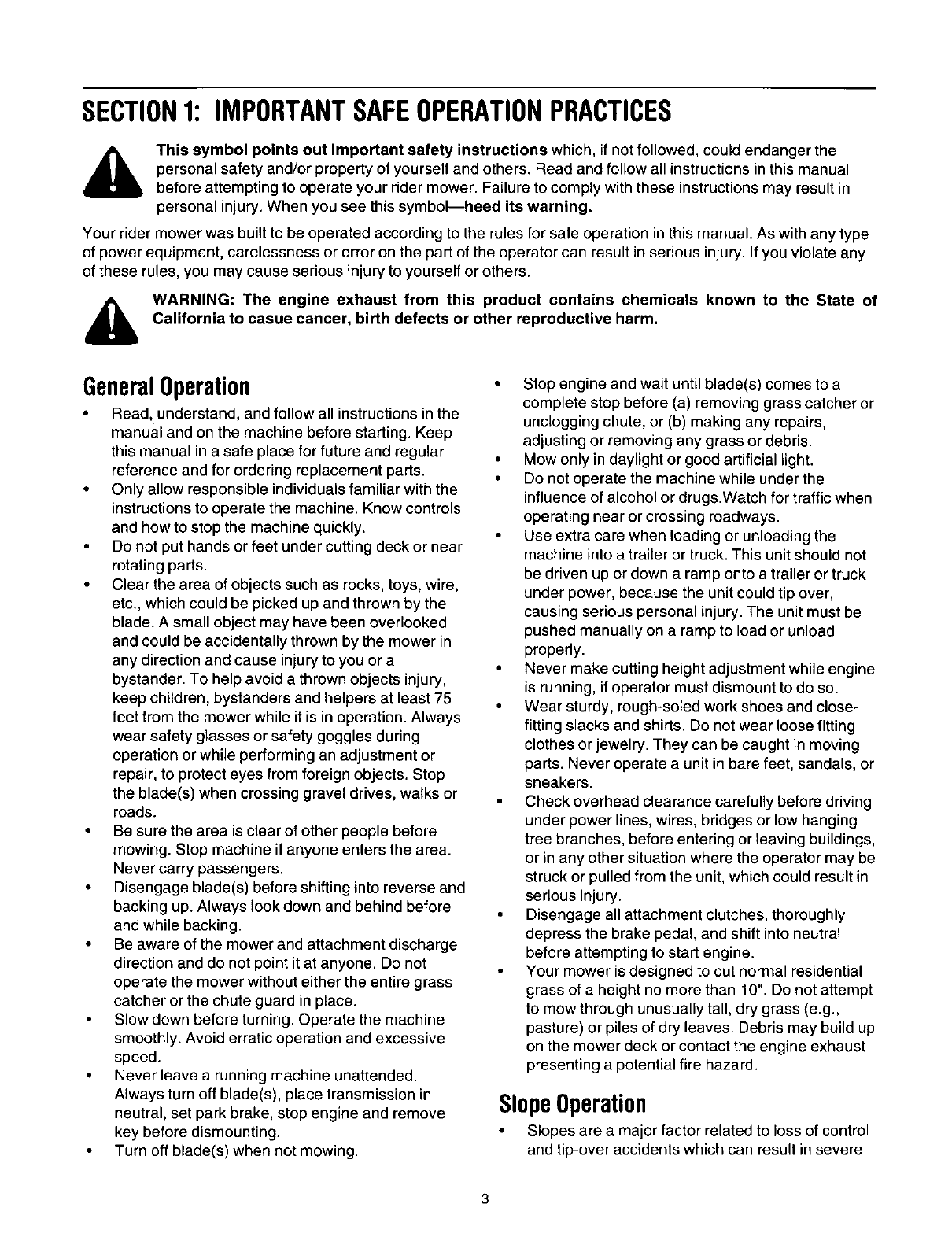 Your rider mower was built to be operated according to the rules for safe operation inthis manual. As with any type