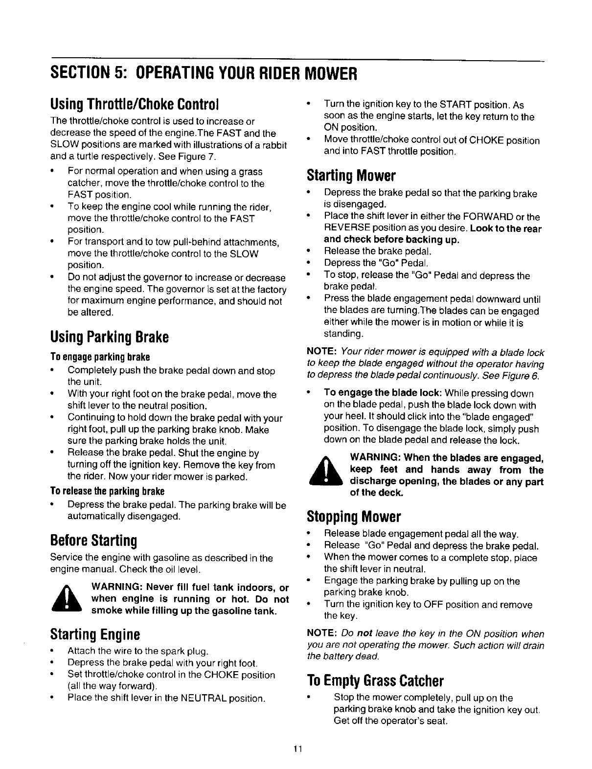 Operating Your Riding Mower ............................................................................ 11