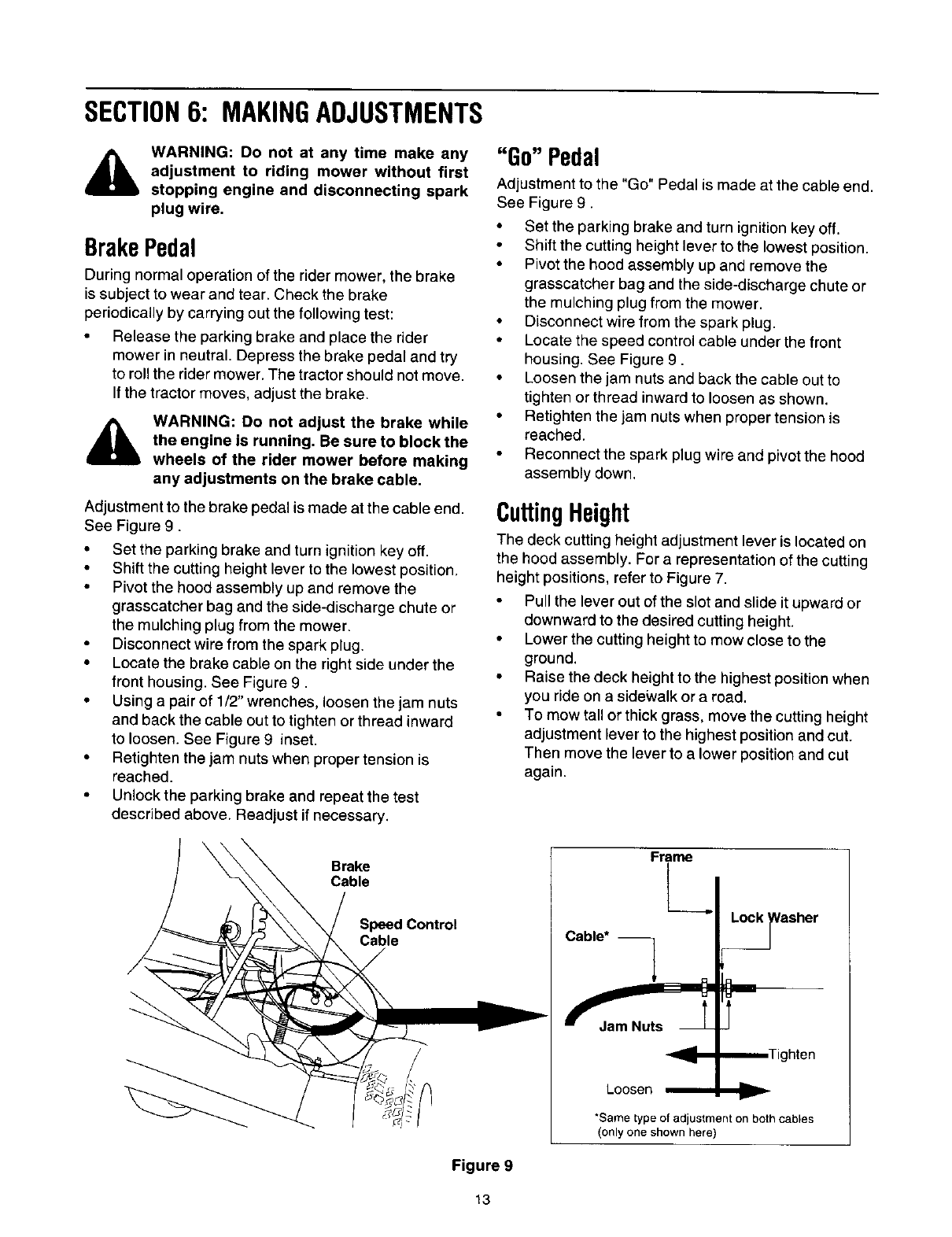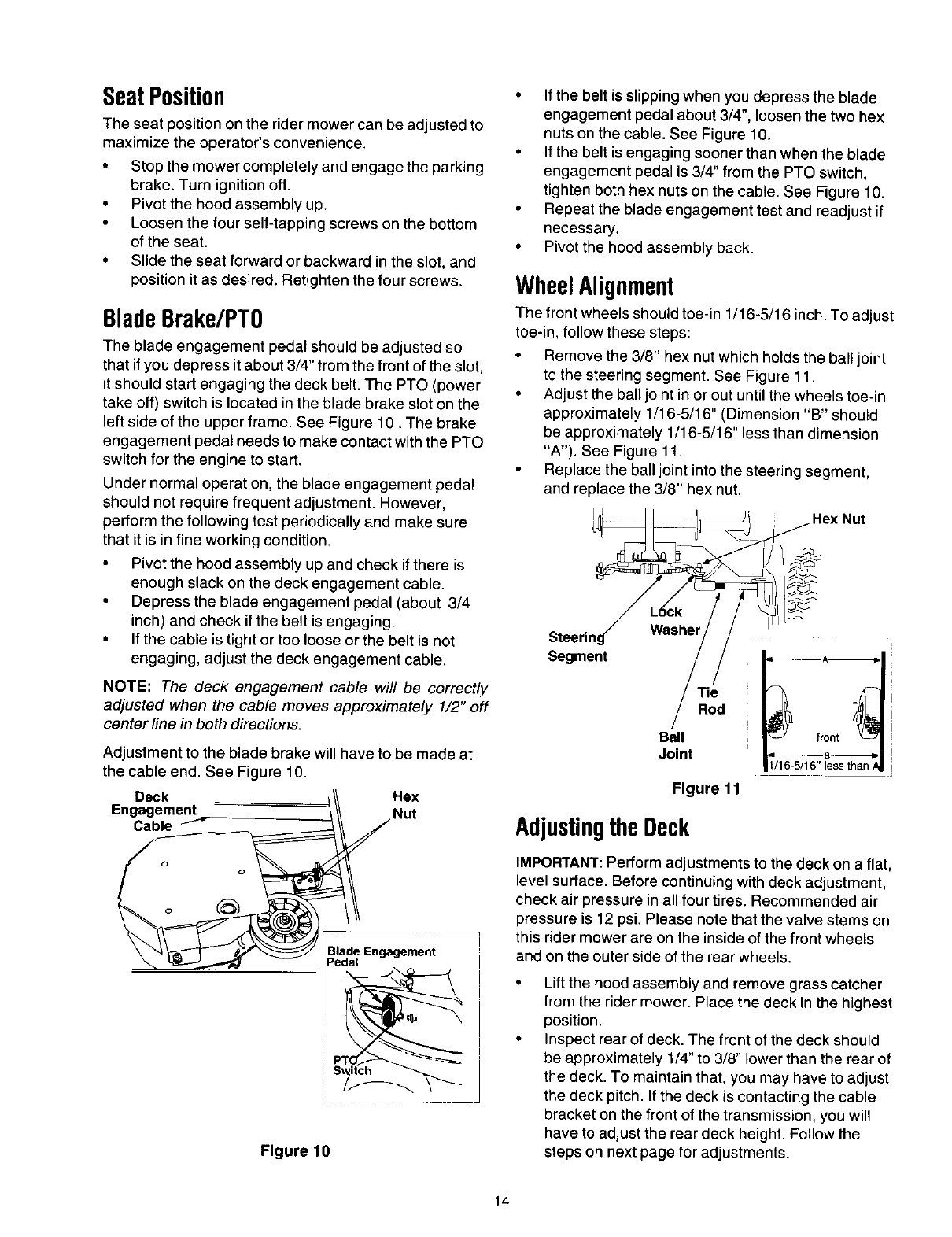 as brake adjustments, clutch adjustments or deck