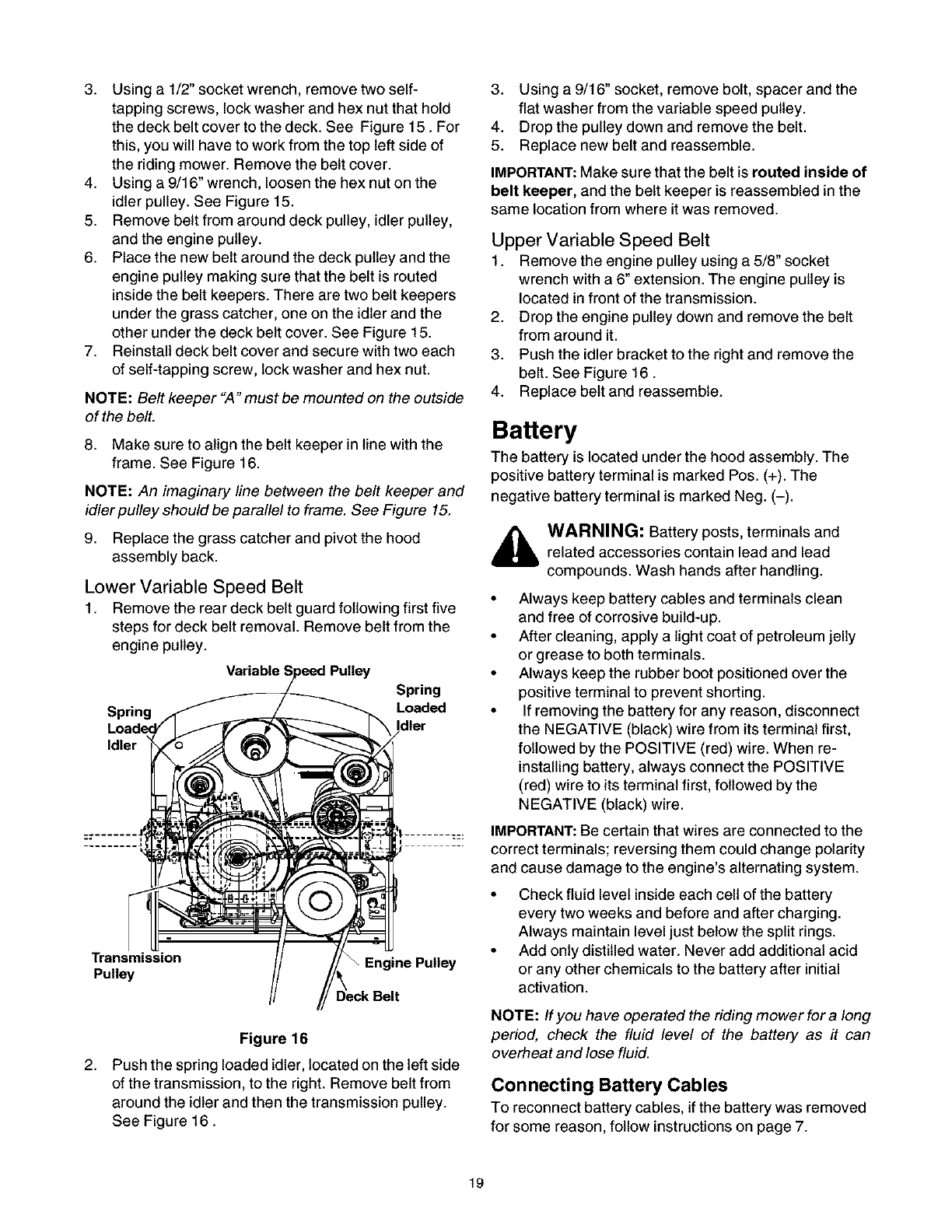 workmanship and our testing determines the battery will not hold charge, Sears will replace the battery at no charge. During the