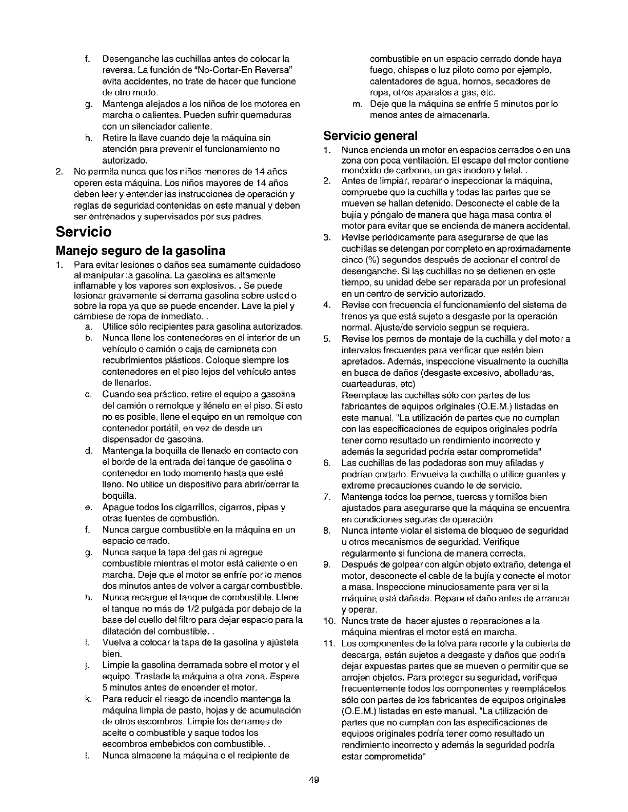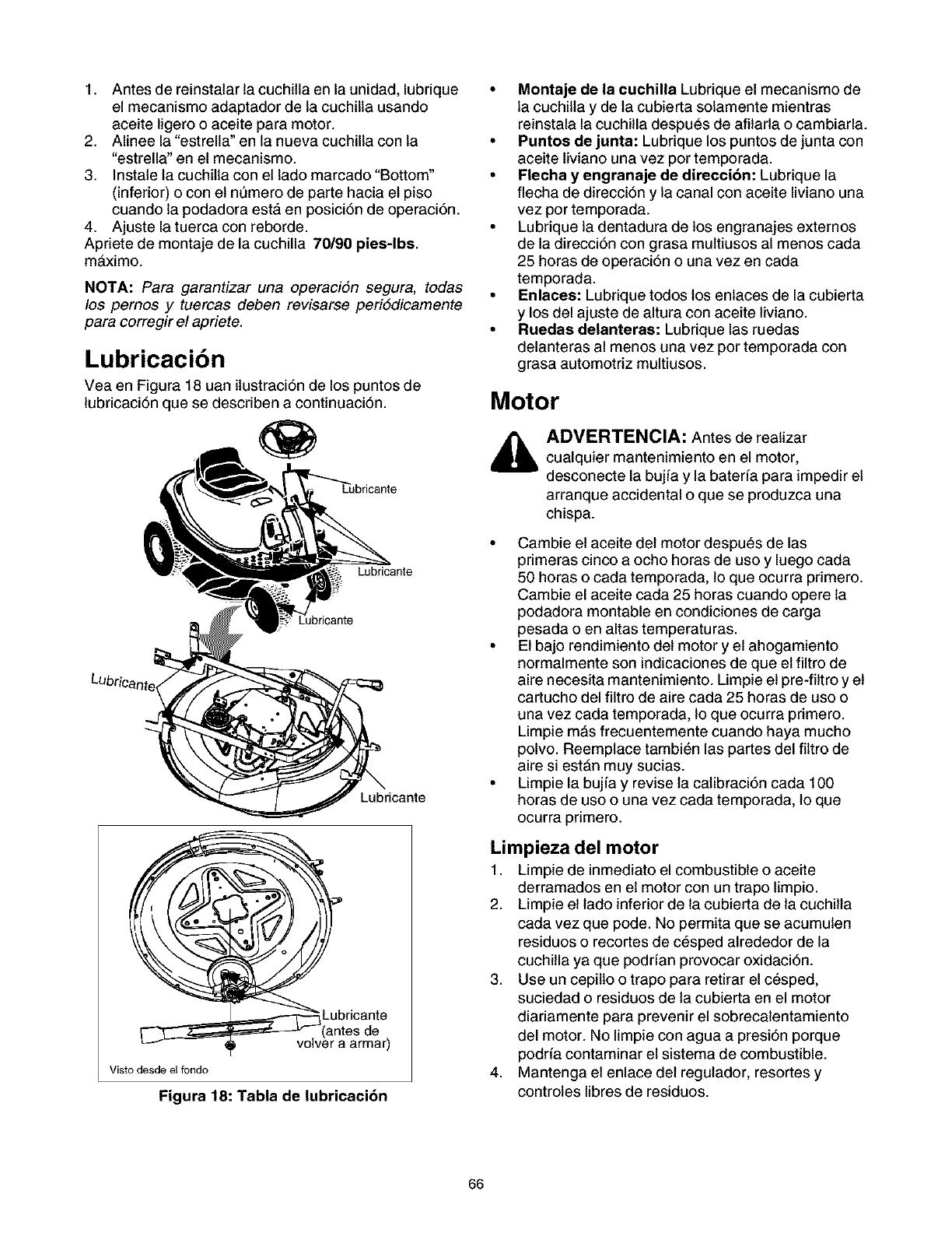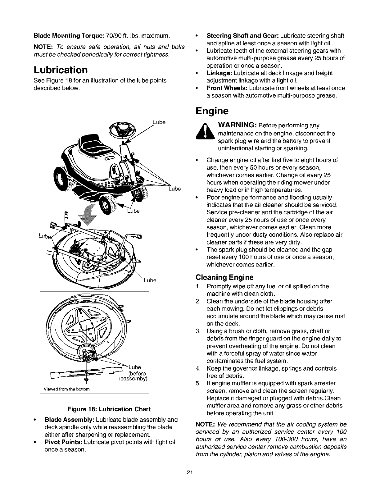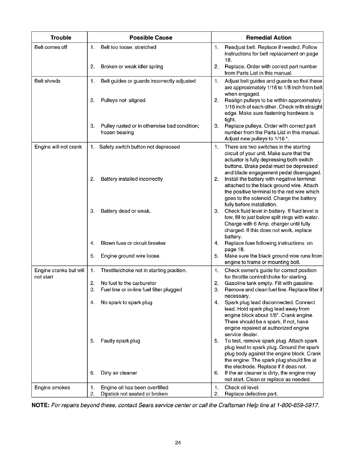 maintained, lubricated and tuned up according to the instructions in the owner's manual, Sears will repair or replace free of