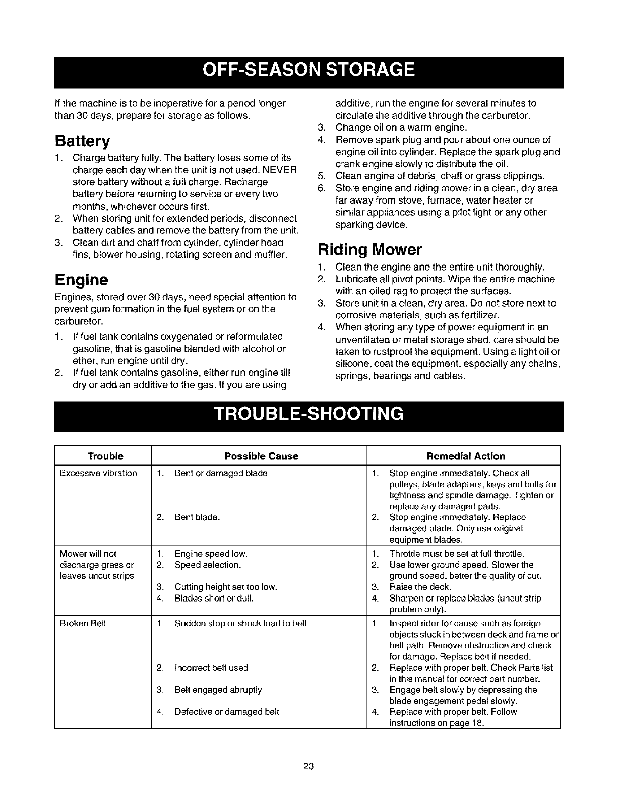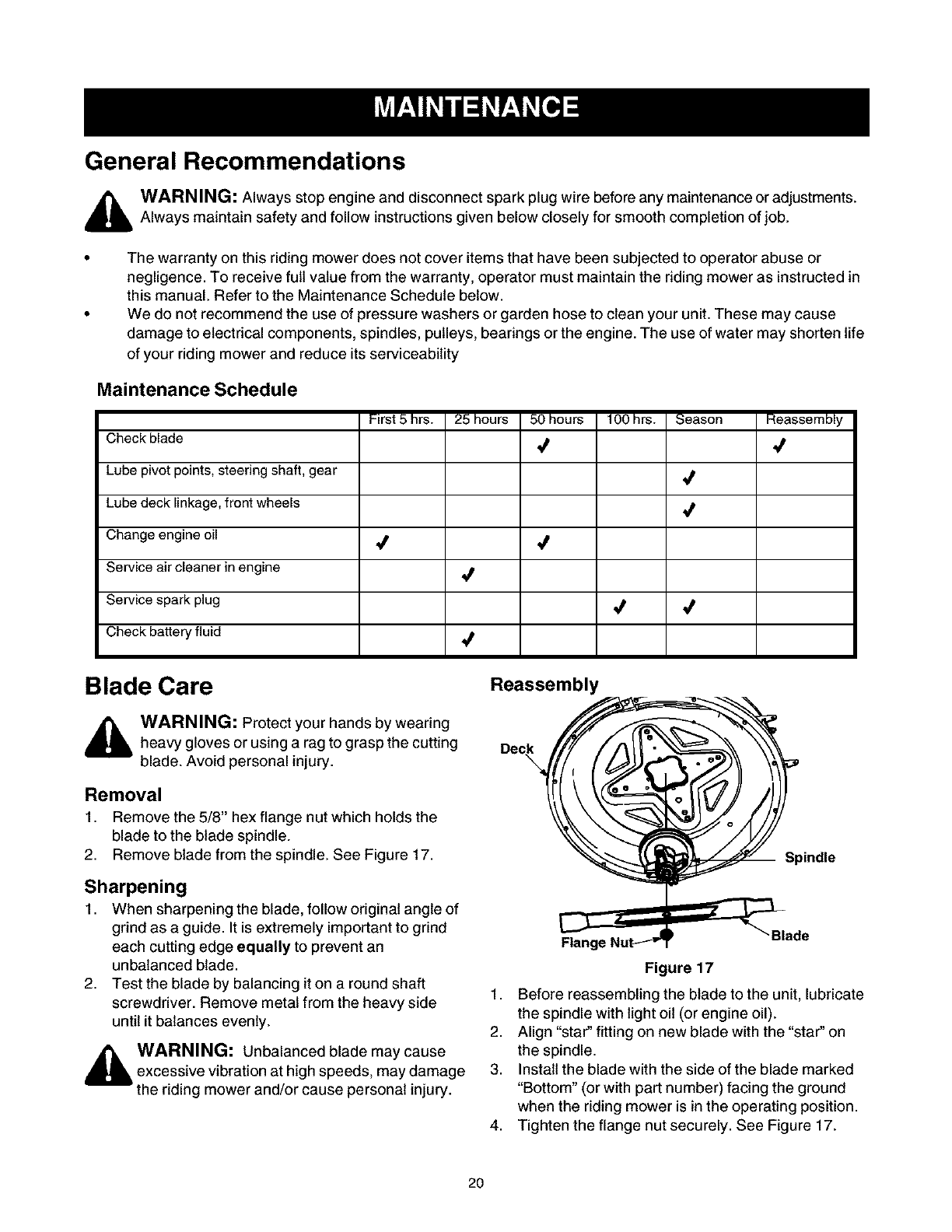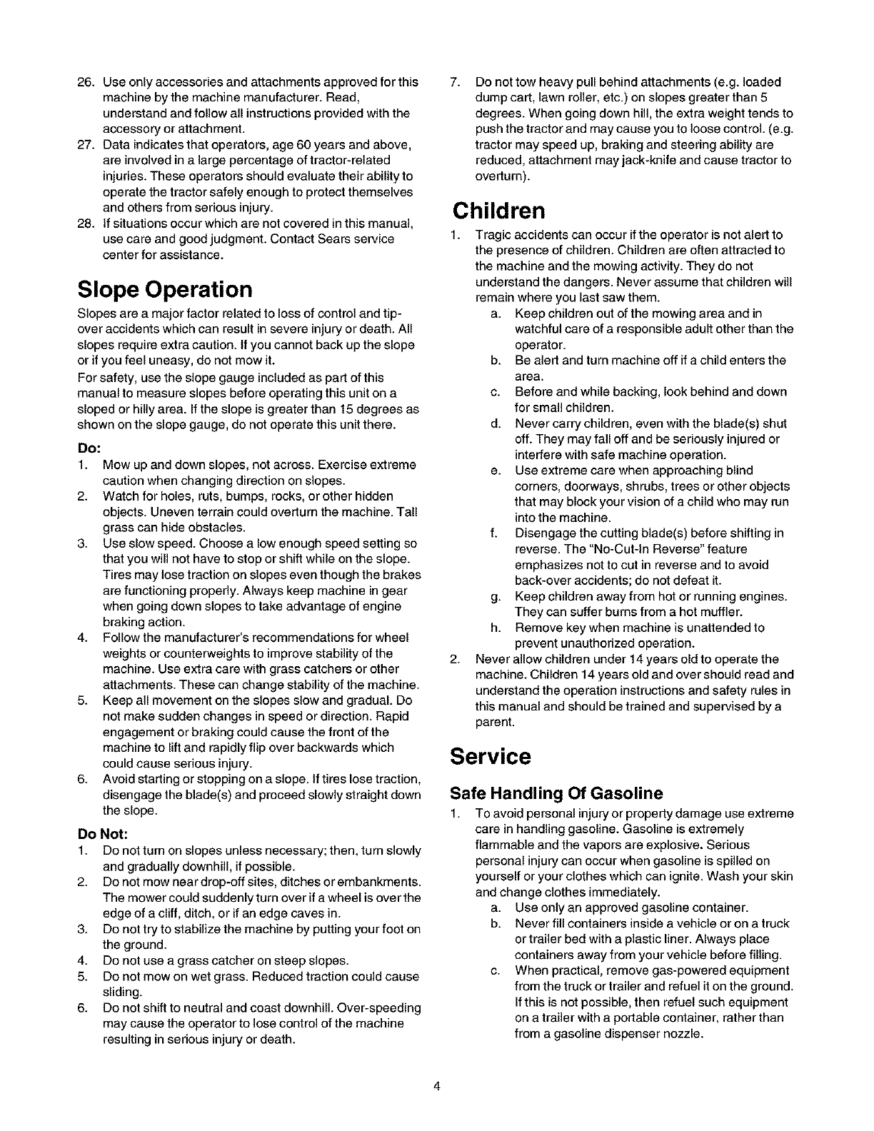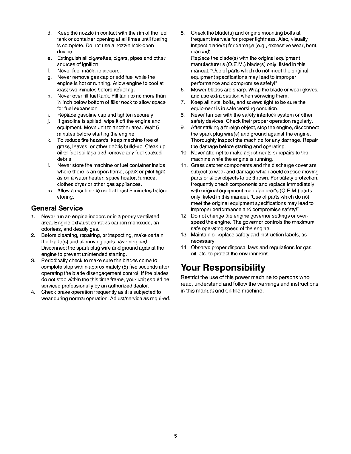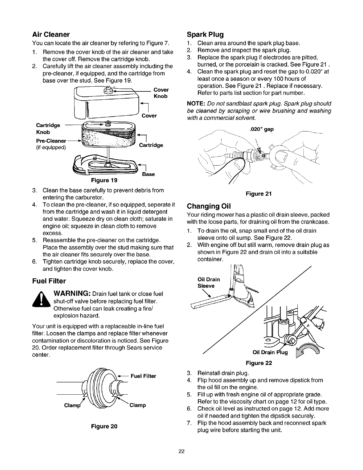maintained, lubricated and tuned up according to the instructions in the owner's manual, Sears will repair or replace free of