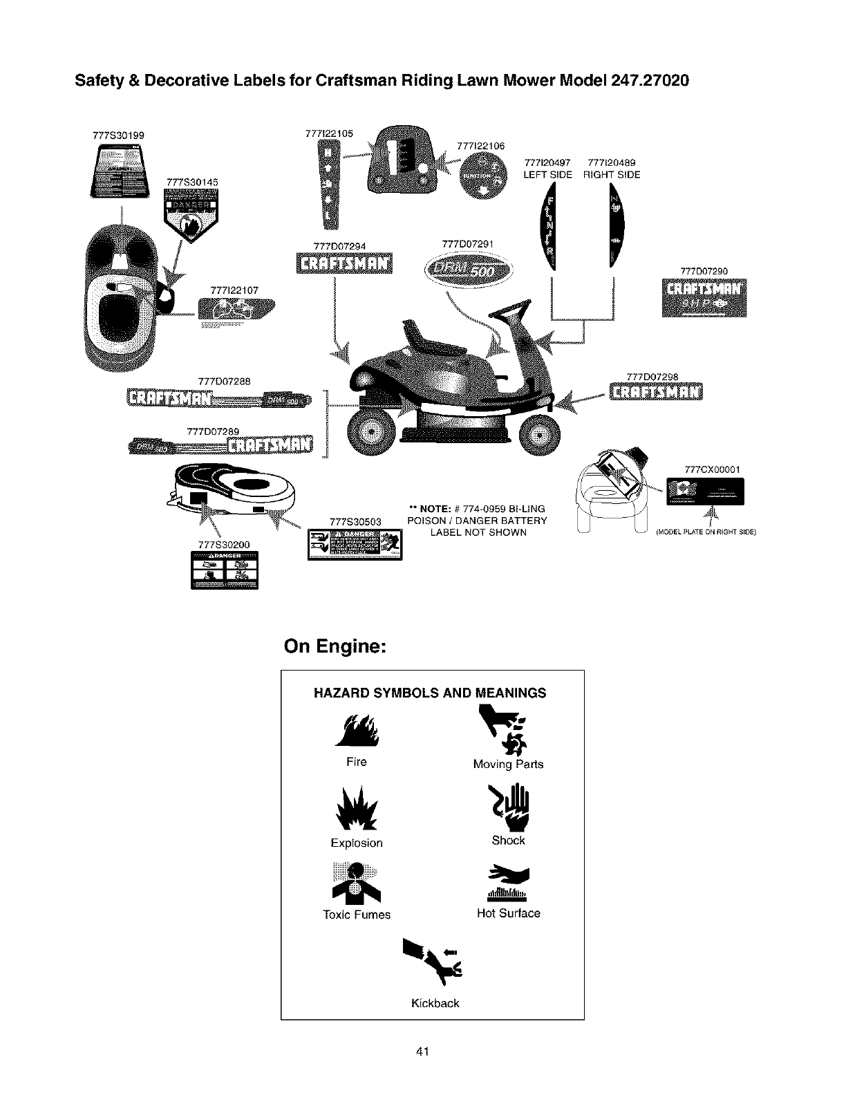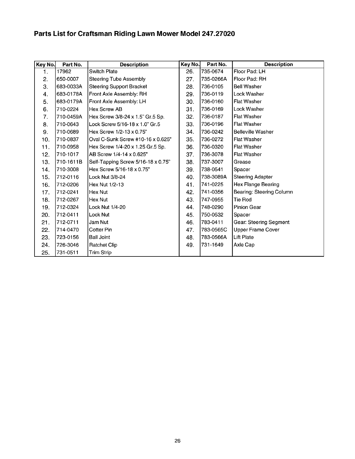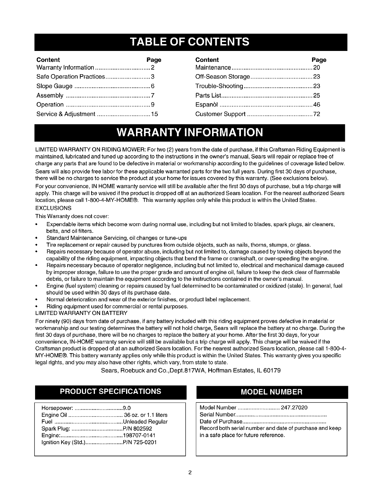 User Manual: Craftsman 247270200 247270200 CRAFTSMAN RIDING MOWER - Manuals and Guides View the owners manual for your CRAFTSMAN RIDING MOWER #247270200. Home:Lawn & Garden Parts:Craftsman Parts:Craftsman RIDING MOWER Manual
