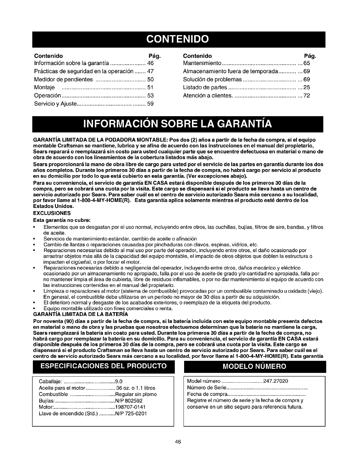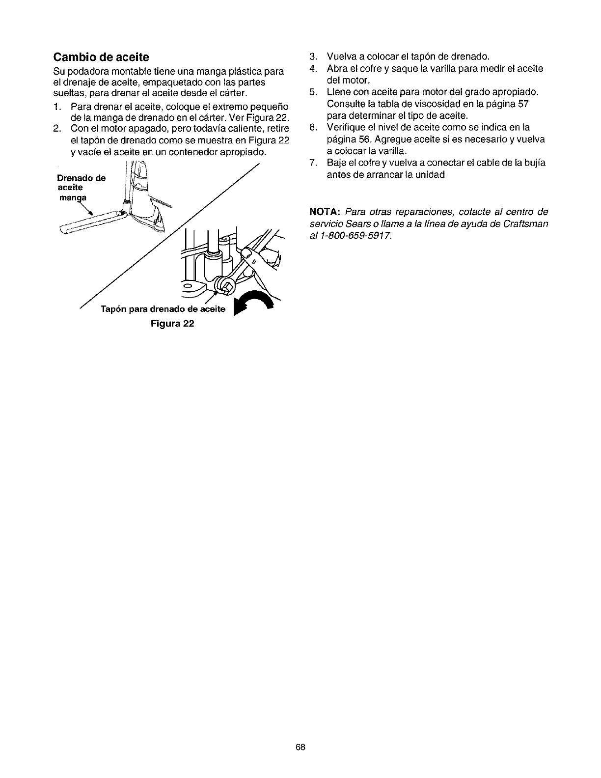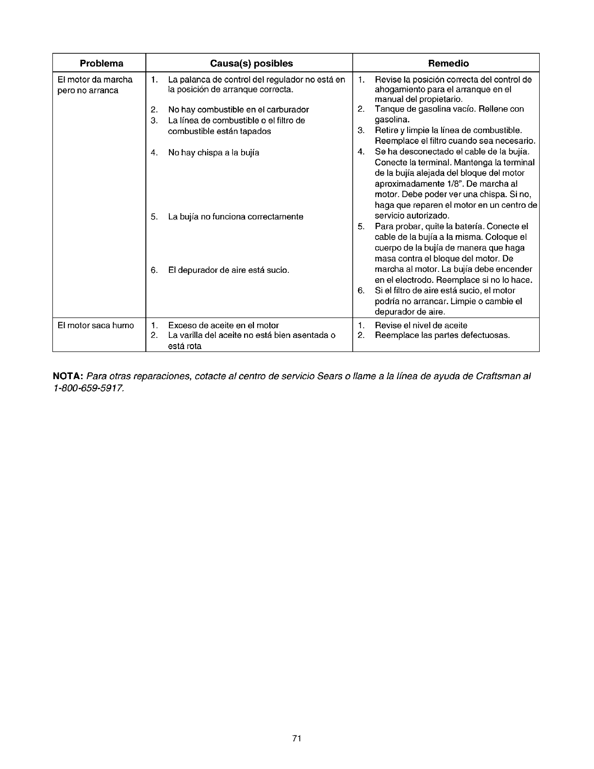 NOTA: Para otras reparaciones, cotacte al centro de servicio Sears o Ilame a la Ifnea de ayuda de Craftsman al