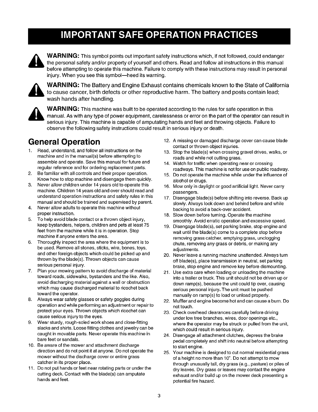 WARNING: The Battery and Engine Exhaust contains chemicals known to the State of California