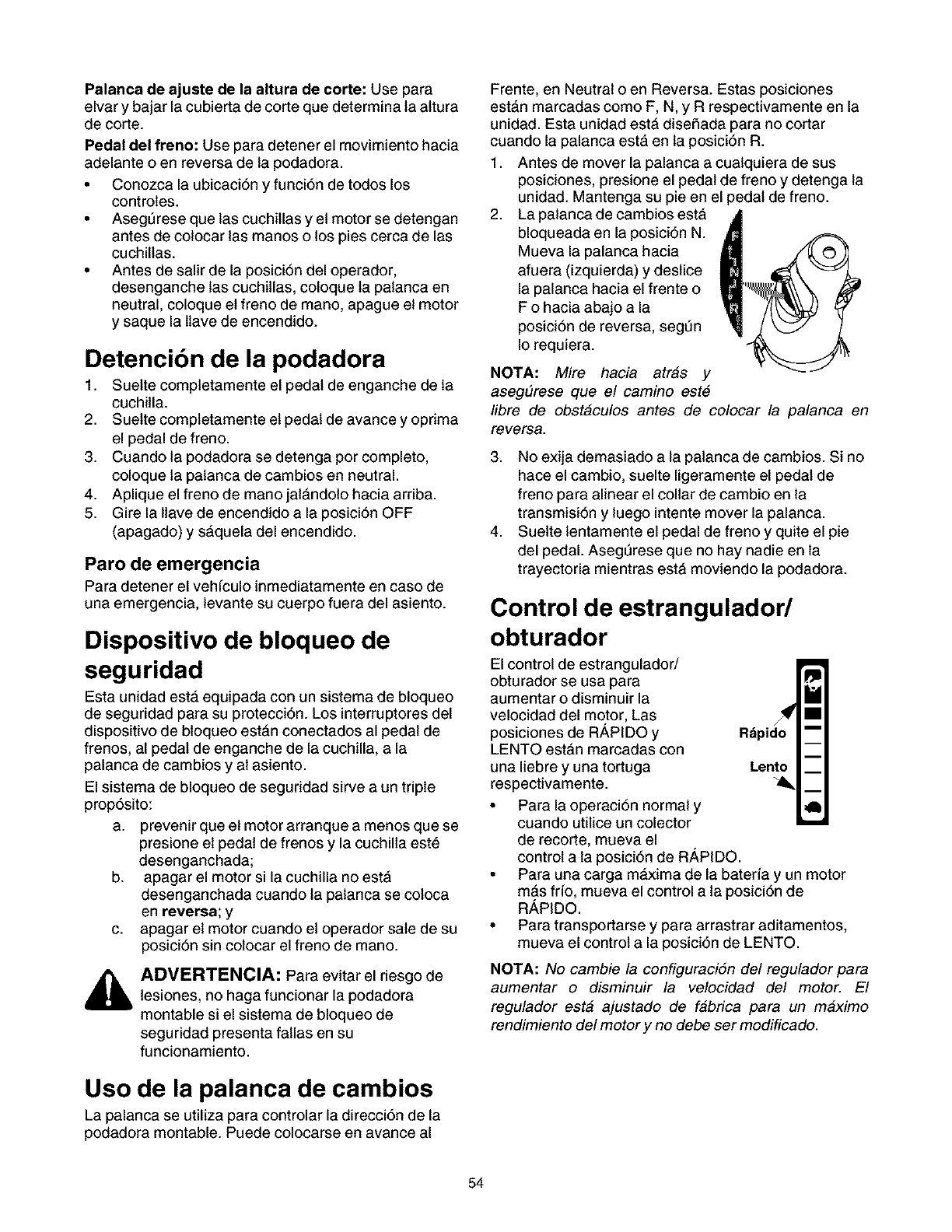 capability of the riding equipment, impacting objects that bend the frame or crankshaft, or over-speeding the engine.