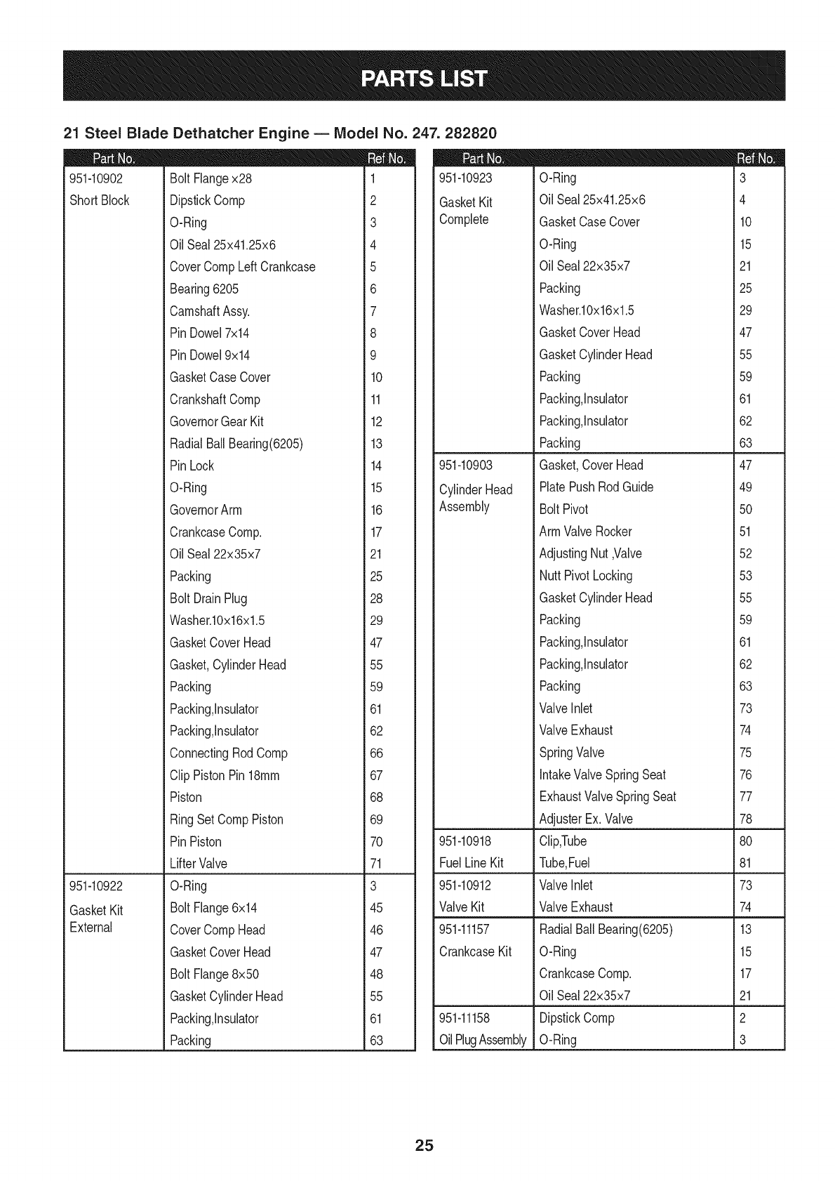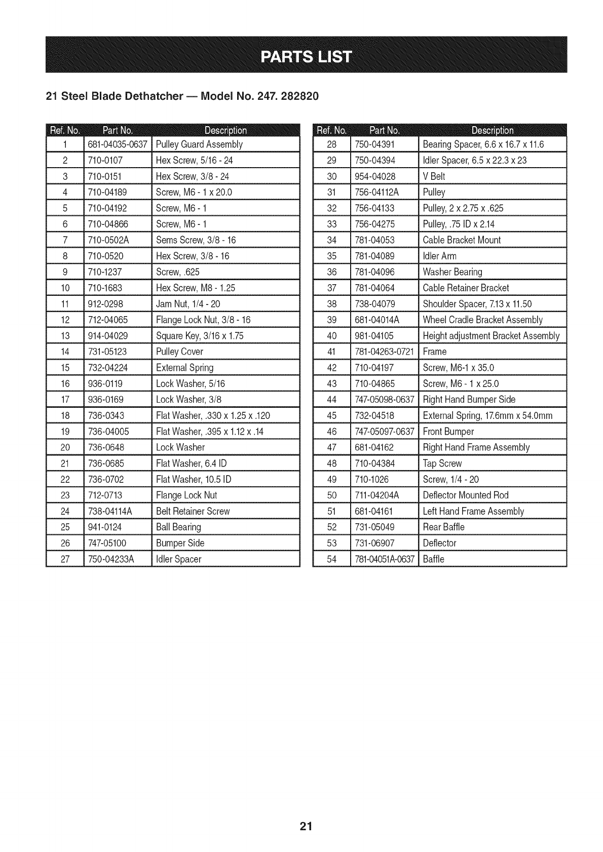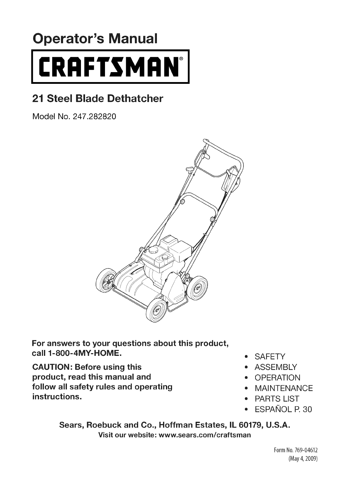 User Manual: Craftsman 247282820 247282820 CRAFTSMAN STEEL BLADE DETHATCHER - Manuals and Guides View the owners manual for your CRAFTSMAN STEEL BLADE DETHATCHER #247282820. Home:Lawn & Garden Parts:Craftsman Parts:Craftsman STEEL BLADE DETHATCHER Manual