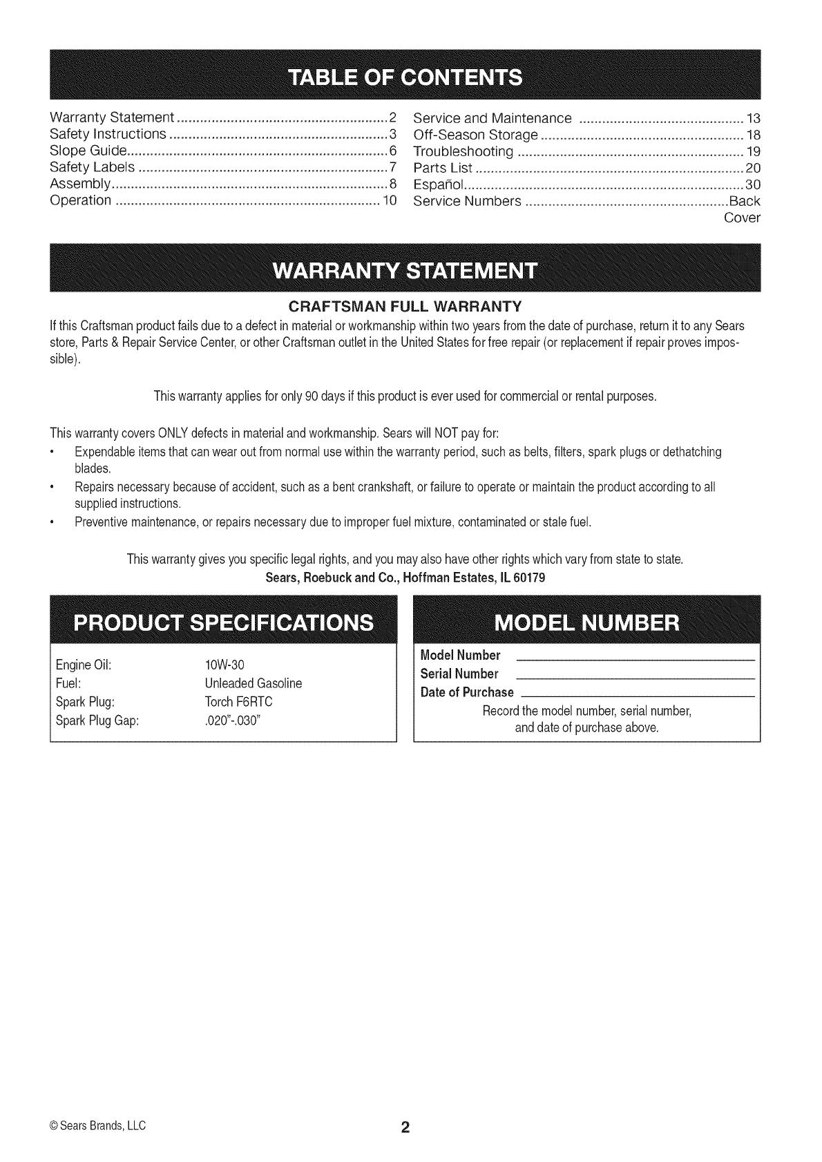 Ifthis Craftsmanproductfailsdueto a defectin materialor workmanshipwithintwo yearsfromthedateof purchase,returnit to any Sears