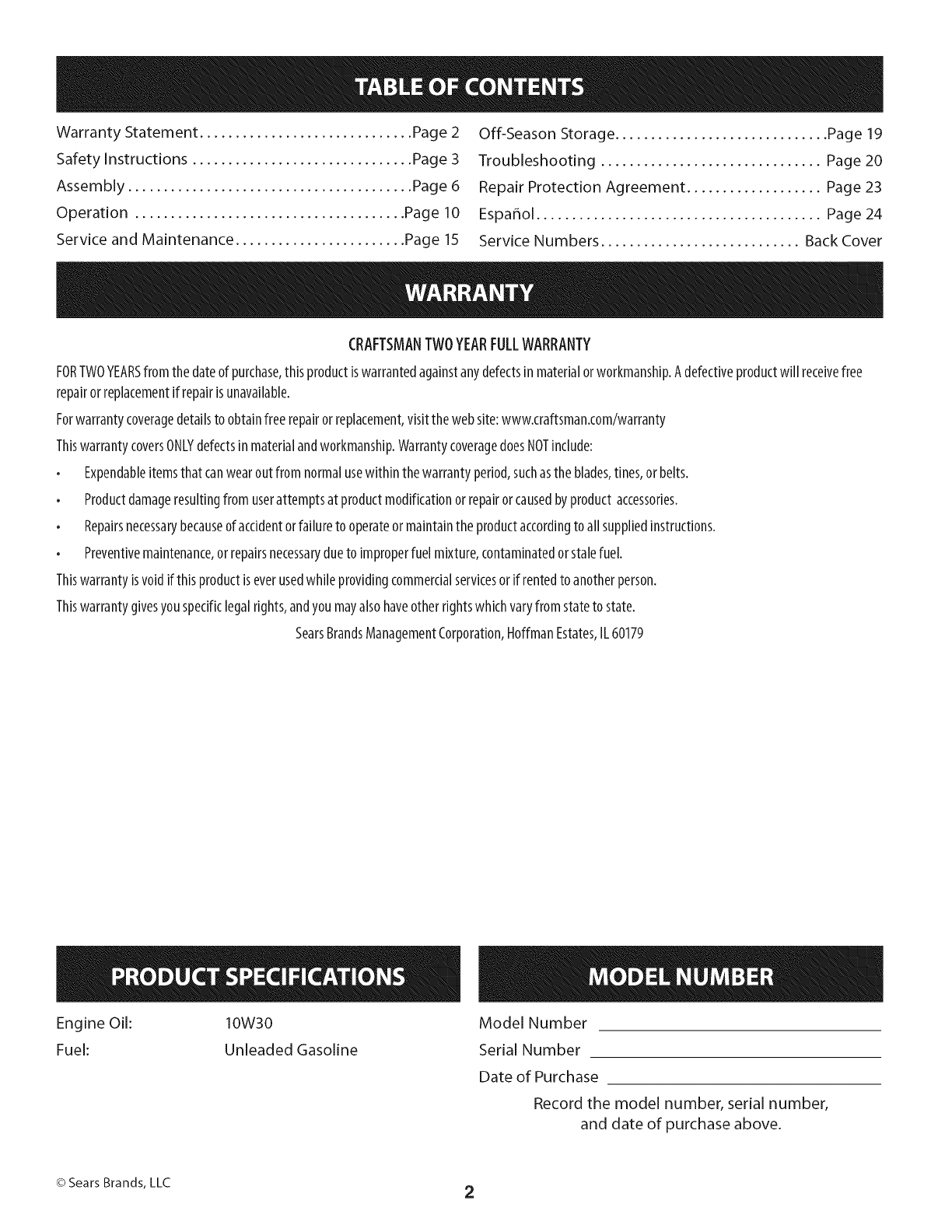 Craftsman 247299342 1604366L User Manual FRONT TINE TILLER Manuals And Guides
