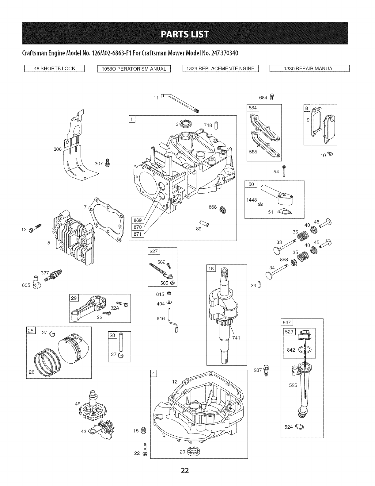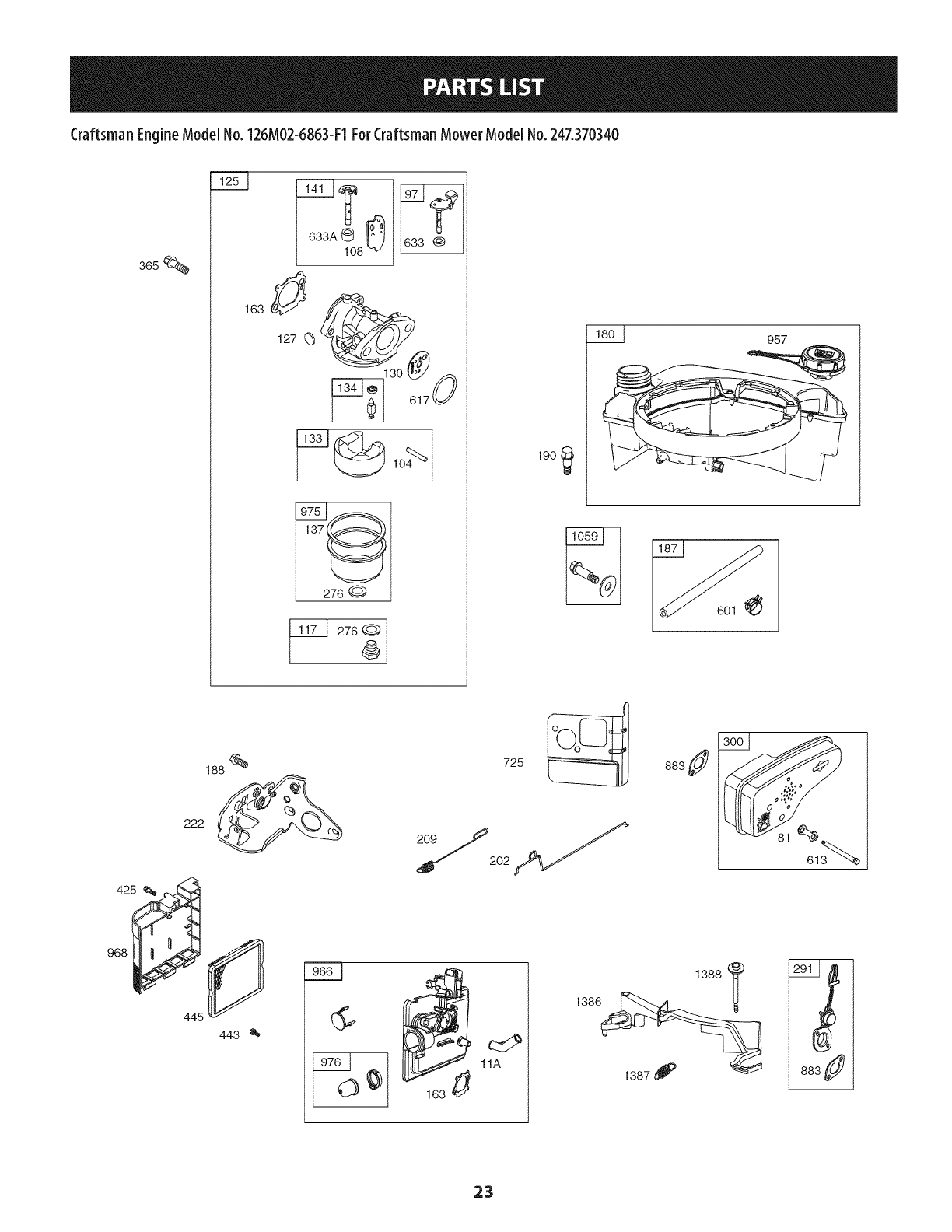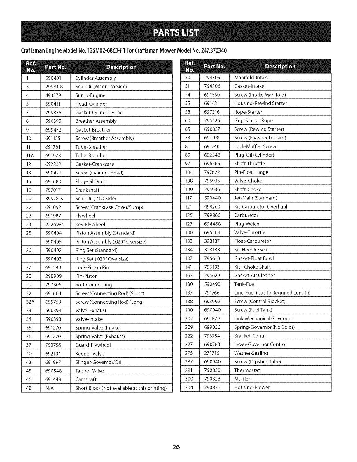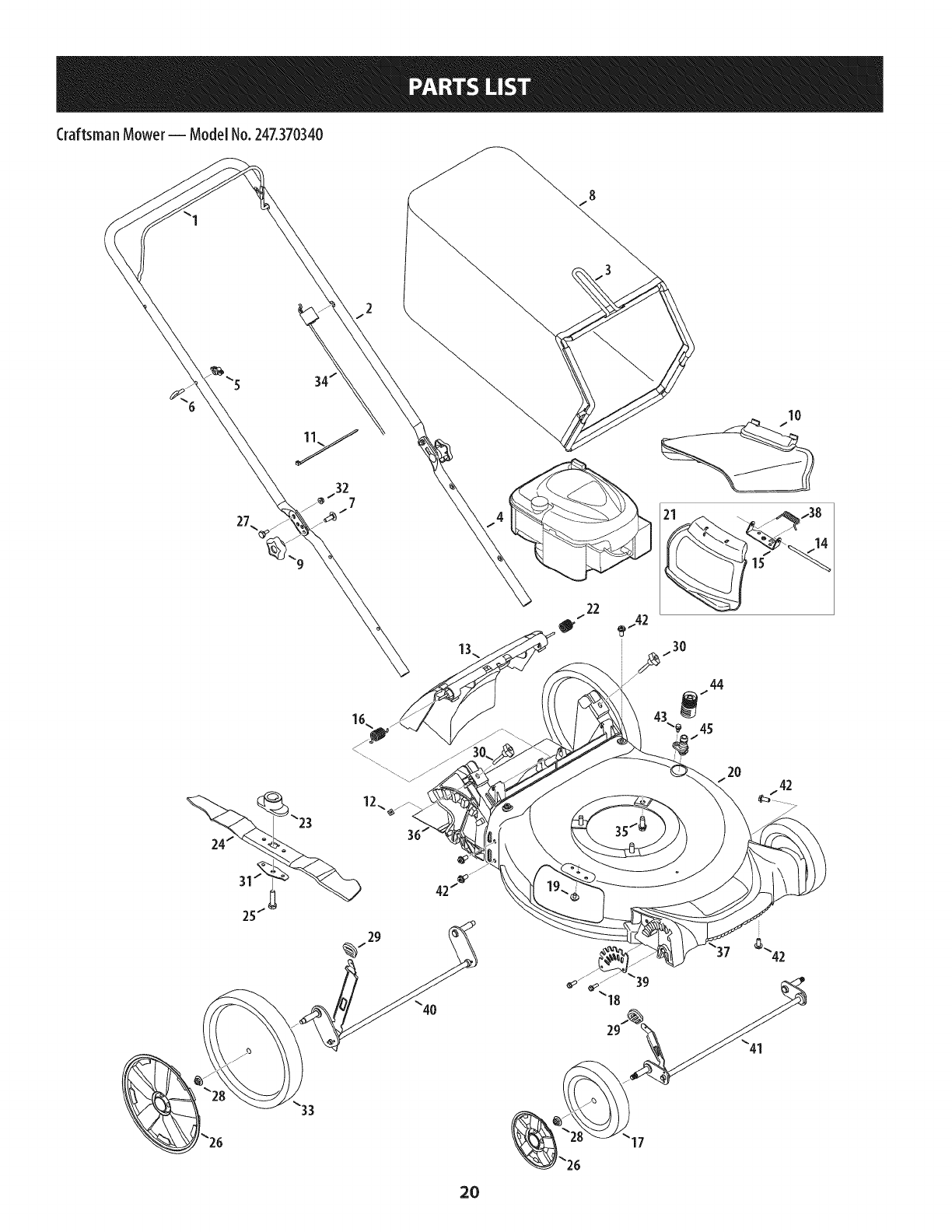User Manual: Craftsman 247370340 247370340 CRAFTSMAN MOWER - Manuals and Guides View the owners manual for your CRAFTSMAN MOWER #247370340. Home:Lawn & Garden Parts:Craftsman Parts:Craftsman MOWER Manual