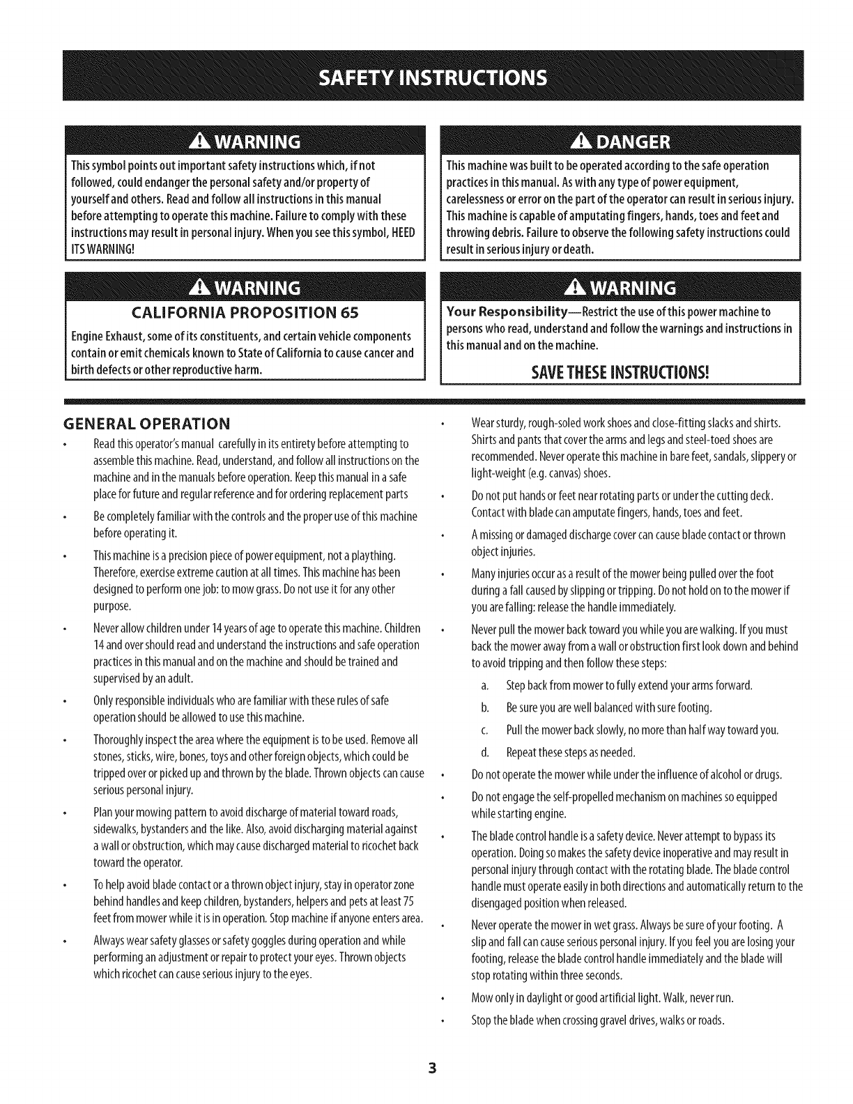 throwingdebris.Failureto observethefollowing safety instructionscould