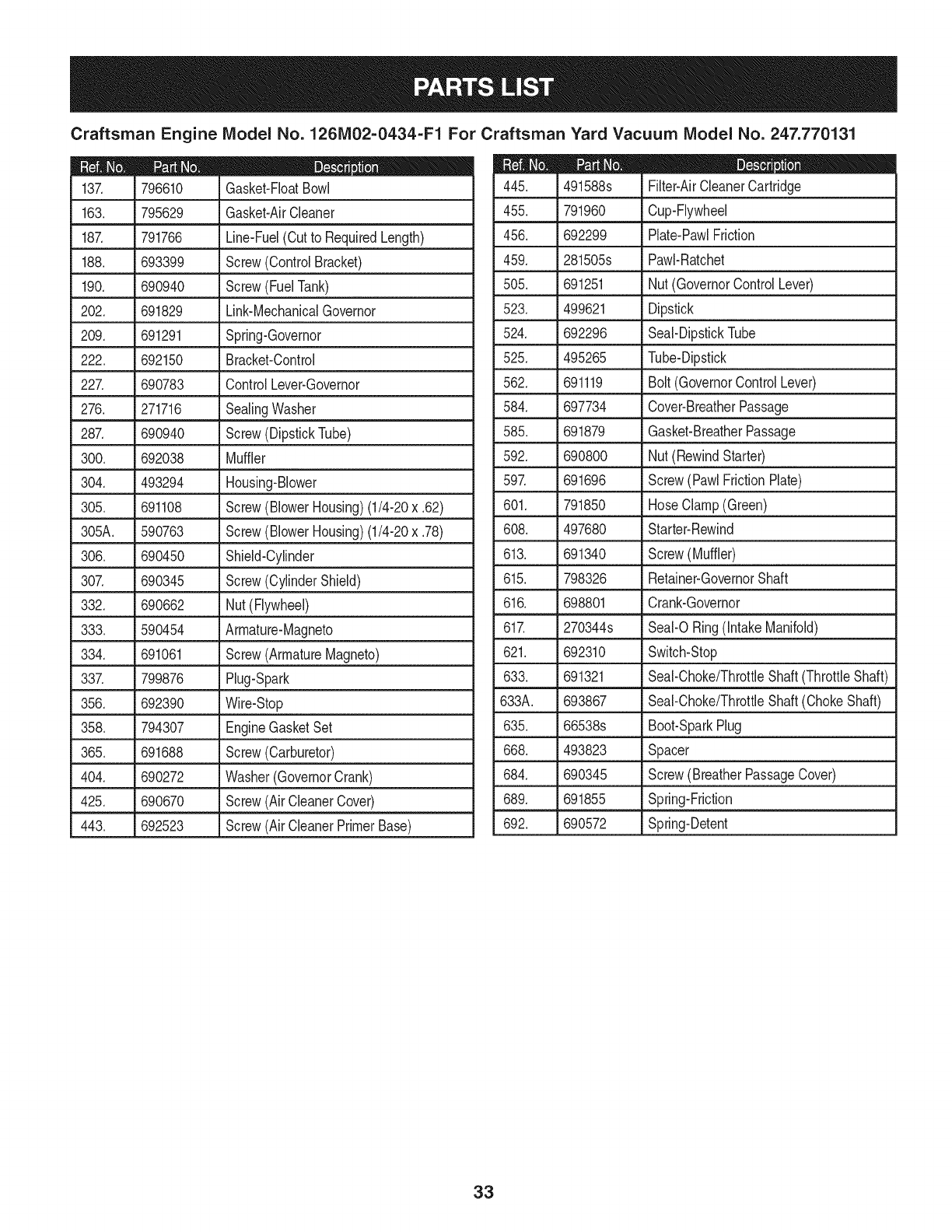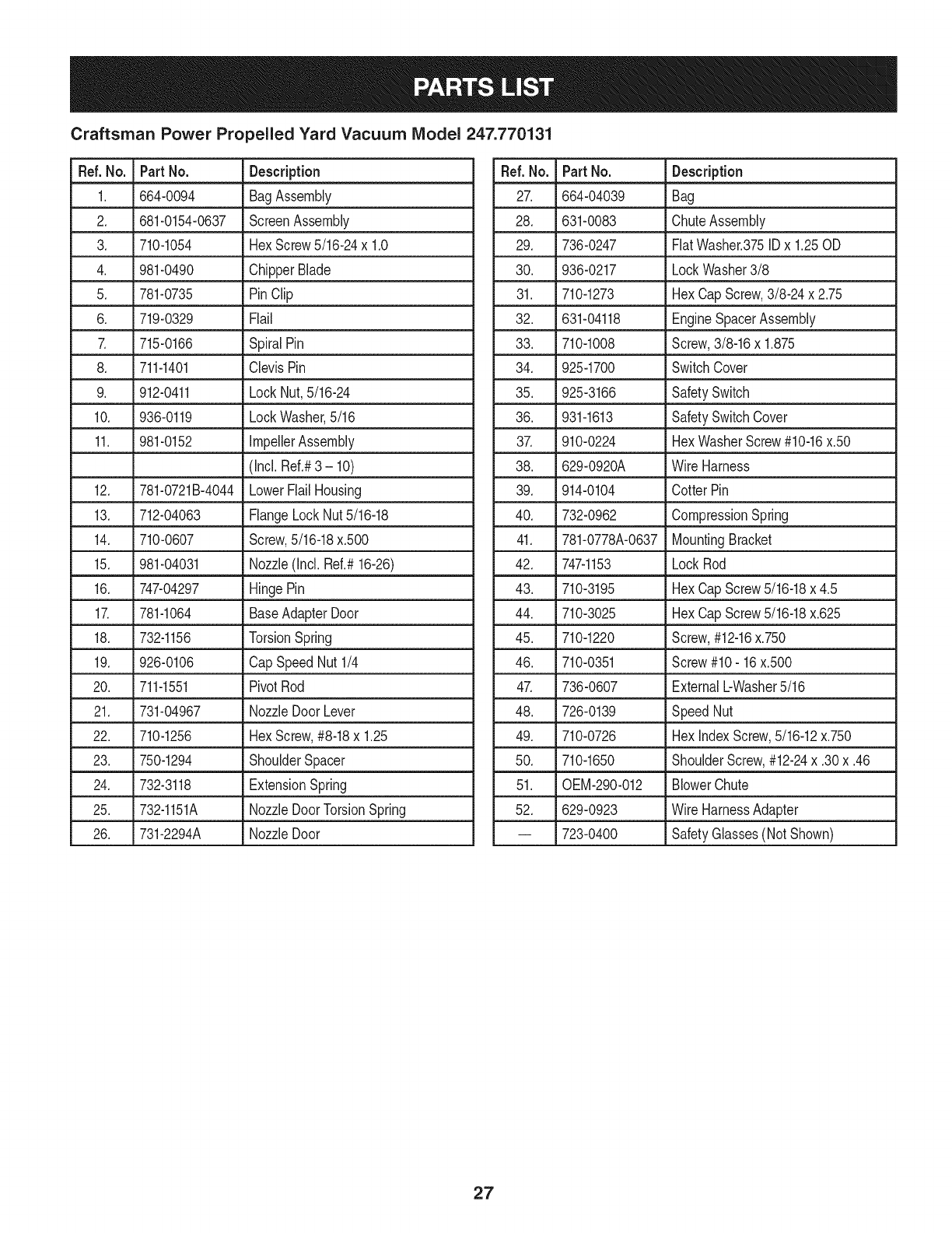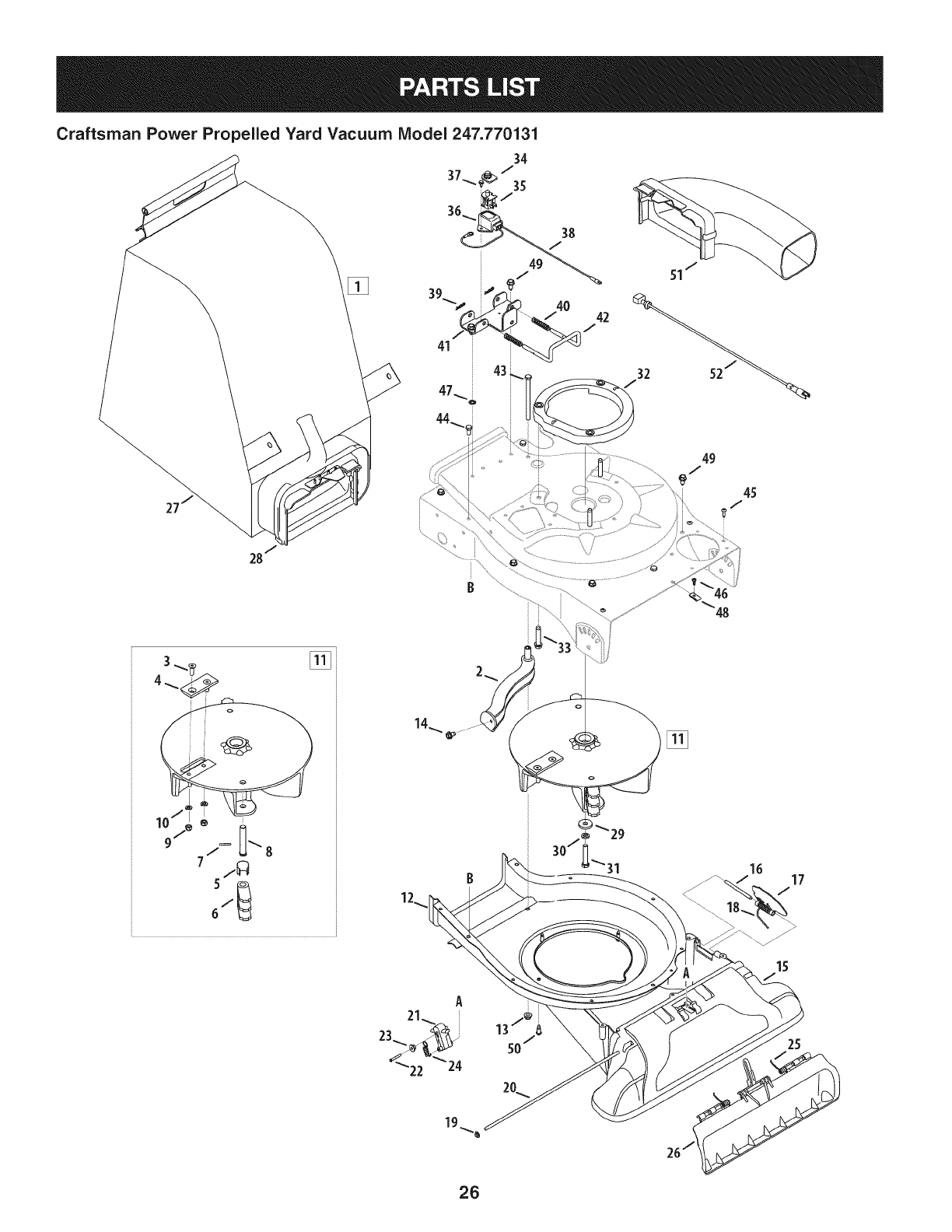 User Manual: Craftsman 247770131 247770131 CRAFTSMAN YARD VACUUM - Manuals and Guides View the owners manual for your CRAFTSMAN YARD VACUUM #247770131. Home:Lawn & Garden Parts:Craftsman Parts:Craftsman YARD VACUUM Manual