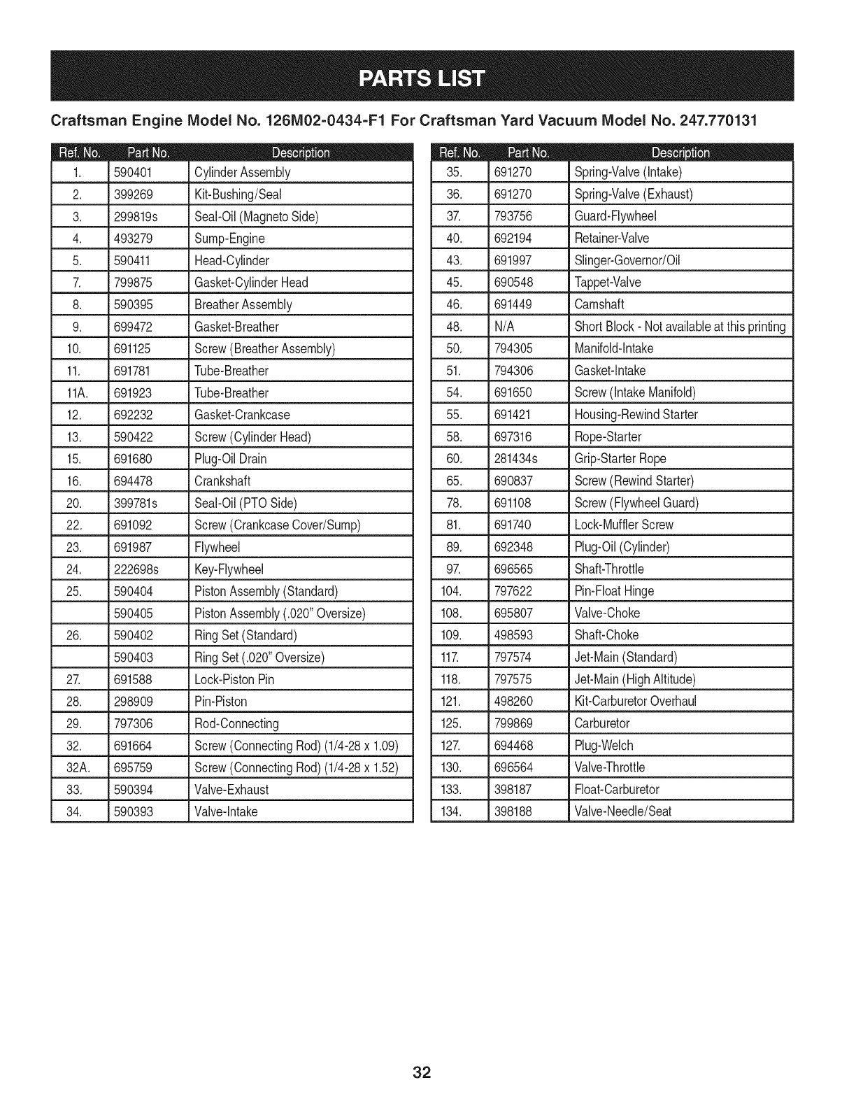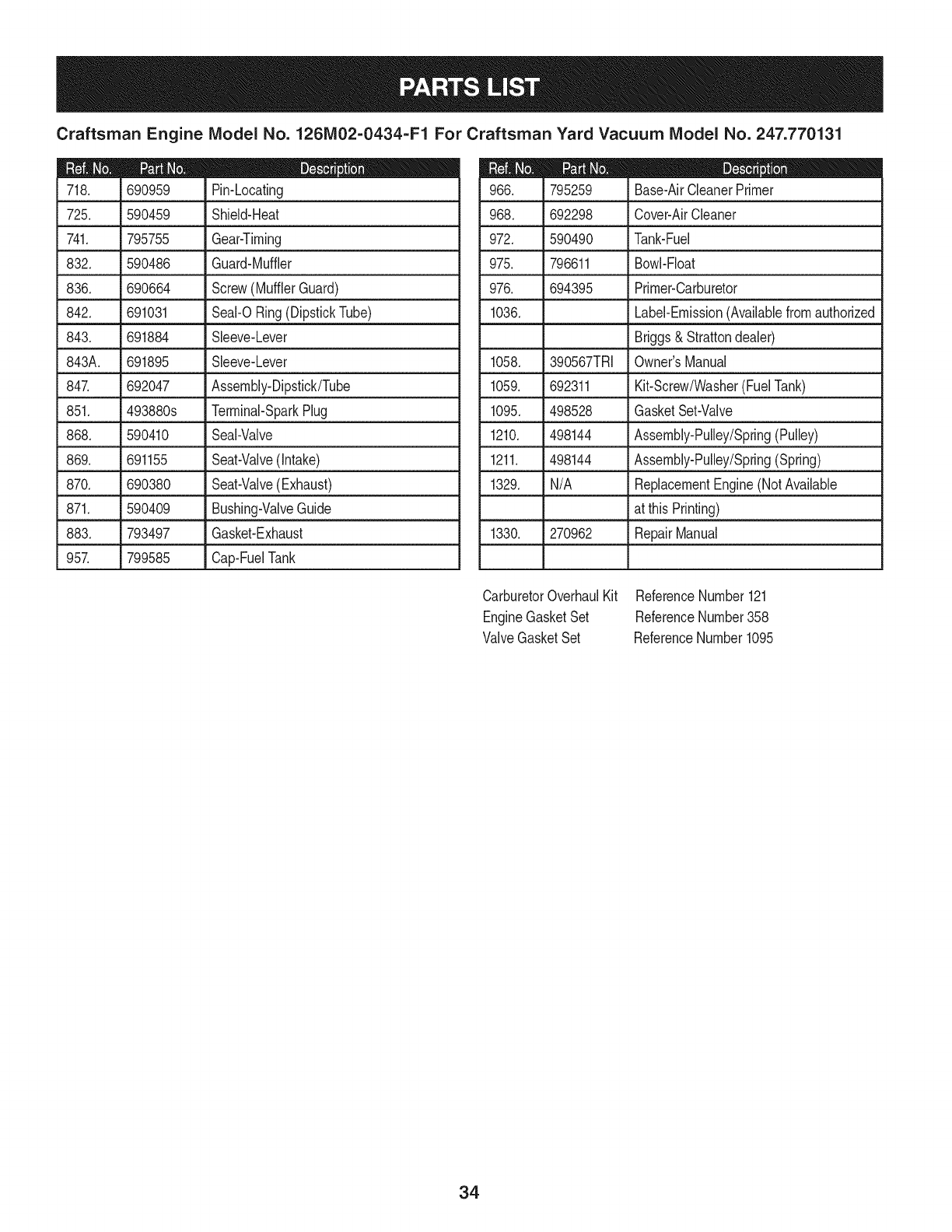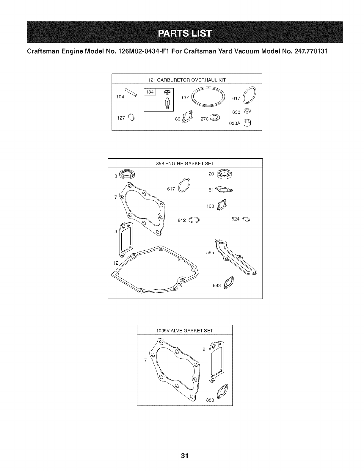 User Manual: Craftsman 247770131 247770131 CRAFTSMAN YARD VACUUM - Manuals and Guides View the owners manual for your CRAFTSMAN YARD VACUUM #247770131. Home:Lawn & Garden Parts:Craftsman Parts:Craftsman YARD VACUUM Manual