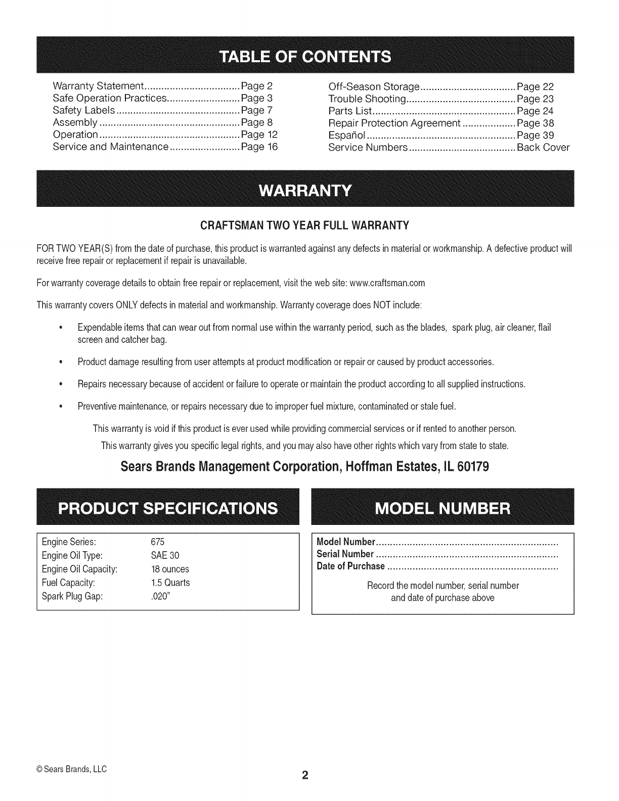 CRAFTSMAN TWO YEAR FULL WARRANTY