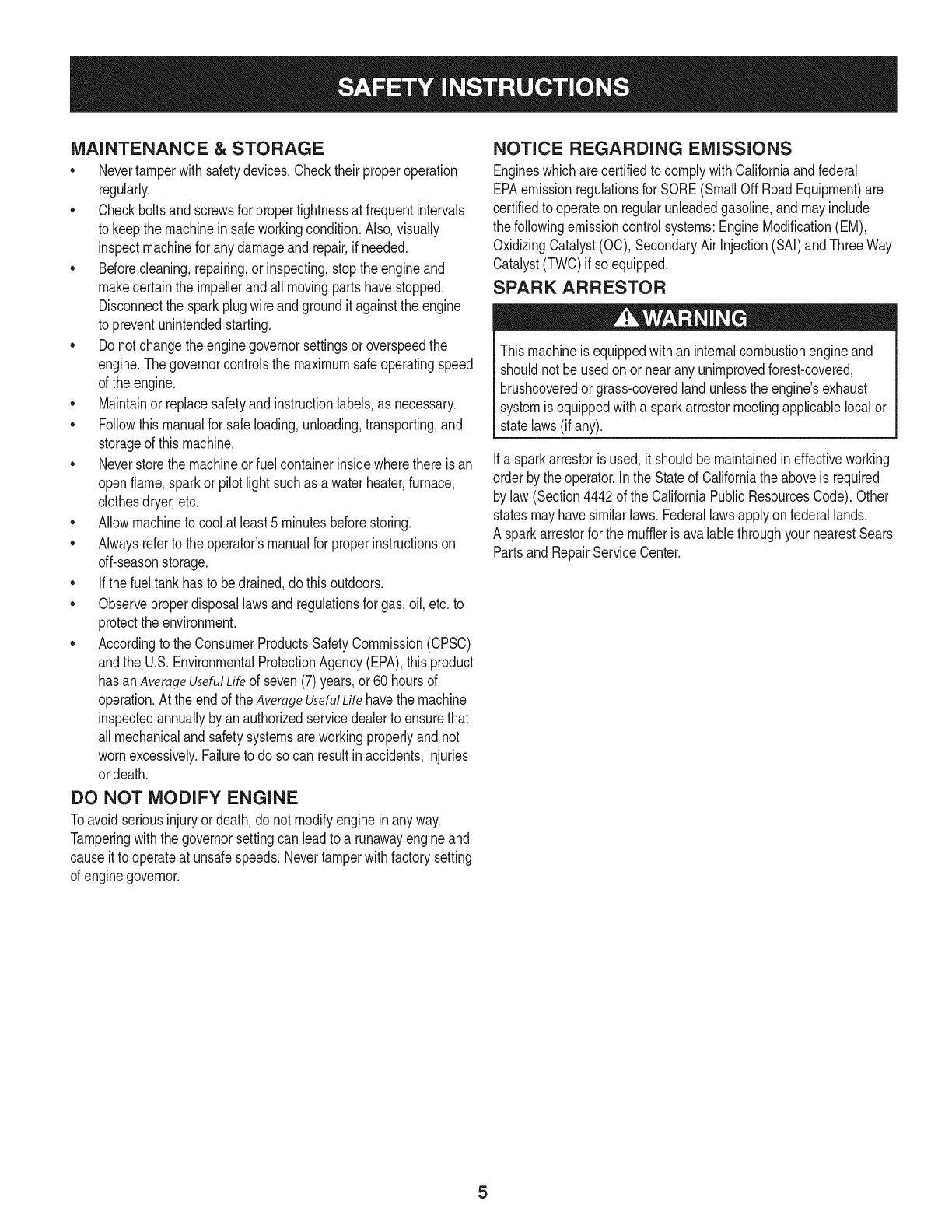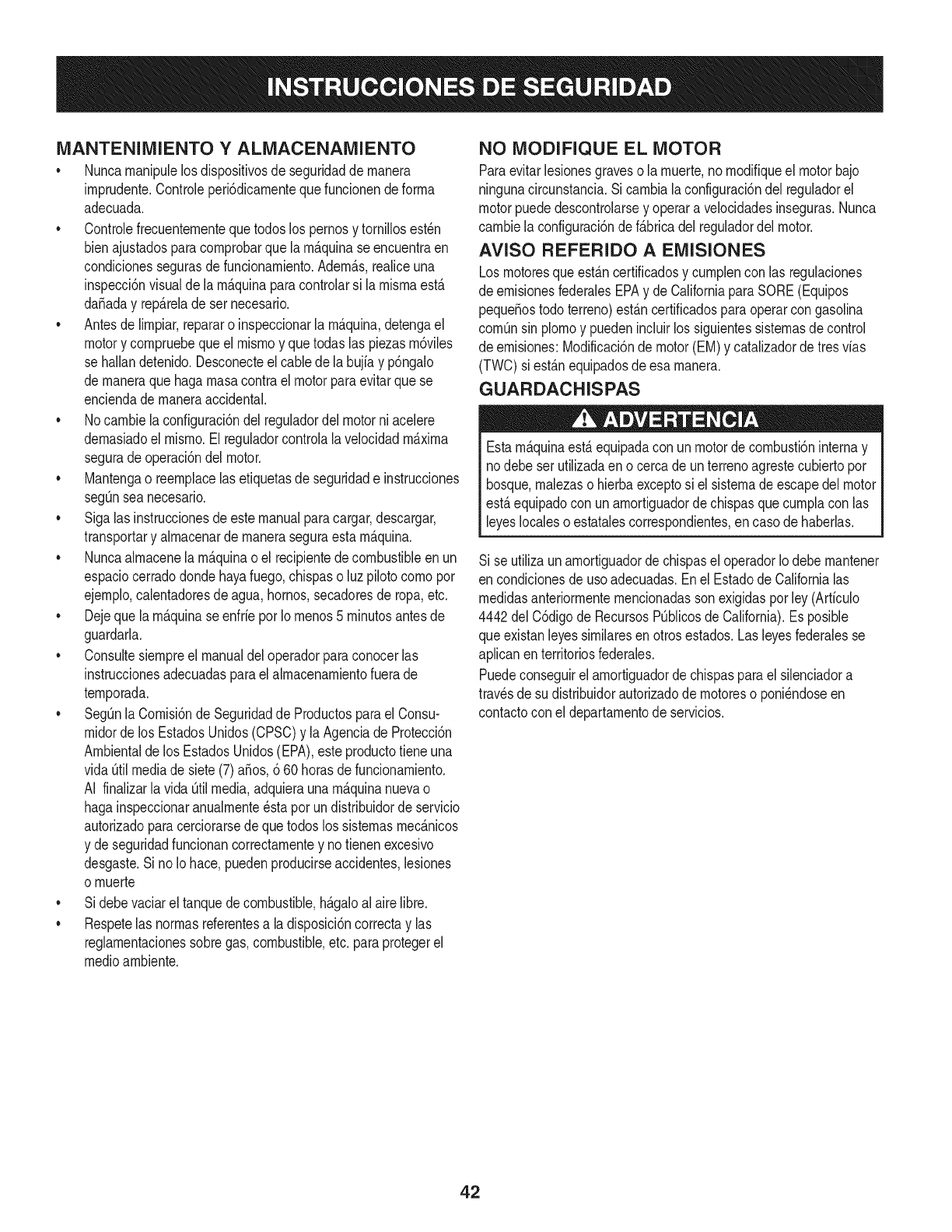 el motor cumpie con ias reglas de emisi6n, descontando el mantenimiento adecuado del mismo segQn las instrucciones de oper-