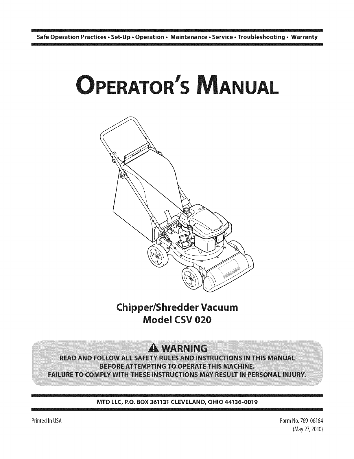 Safe Operation Practices • Set-Up • Operation • Maintenance • Service • Troubleshooting • Warranty