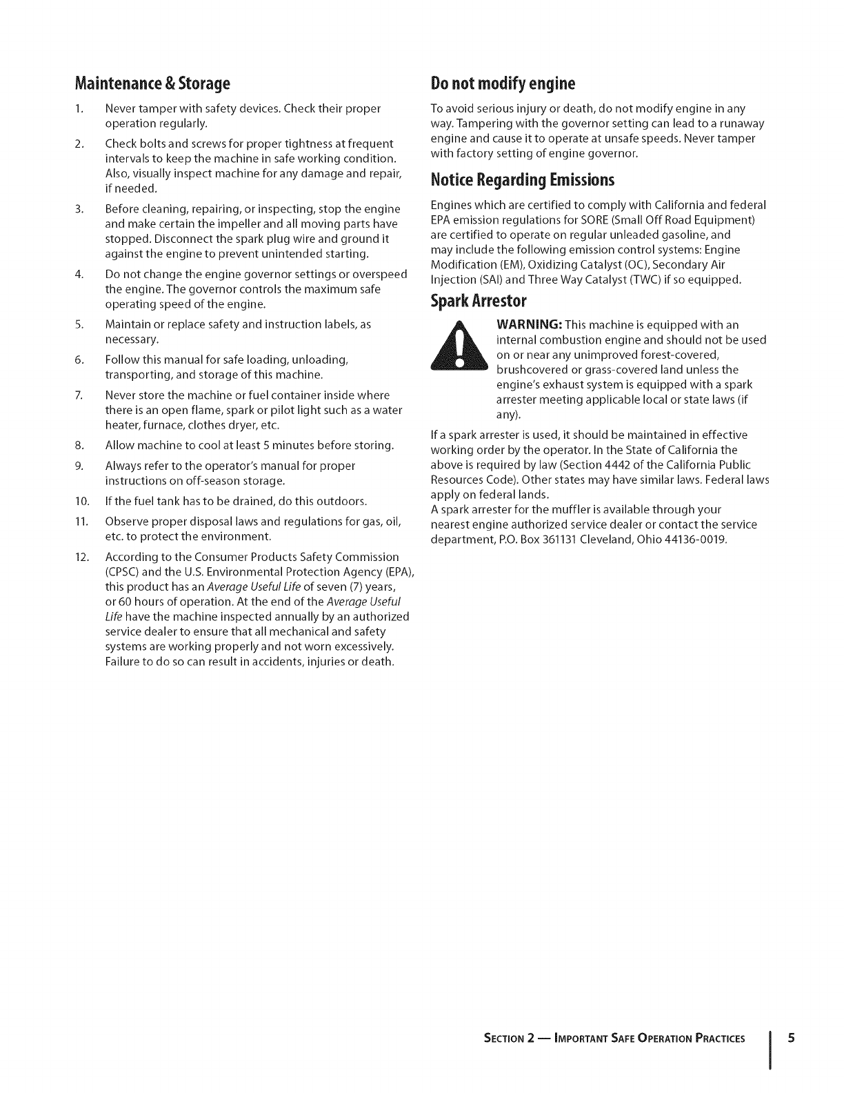 warranty and service. Please refer to the engine manufacturer's