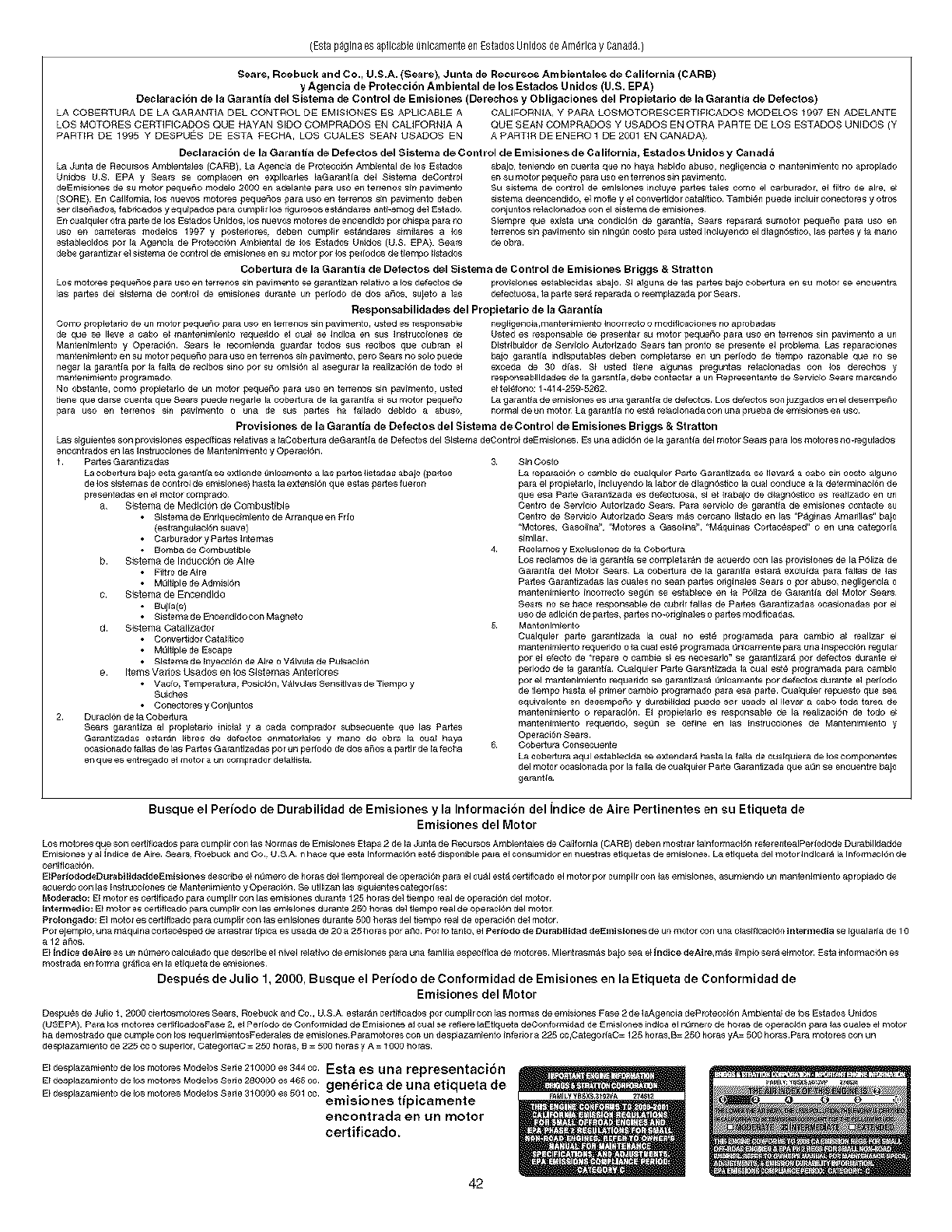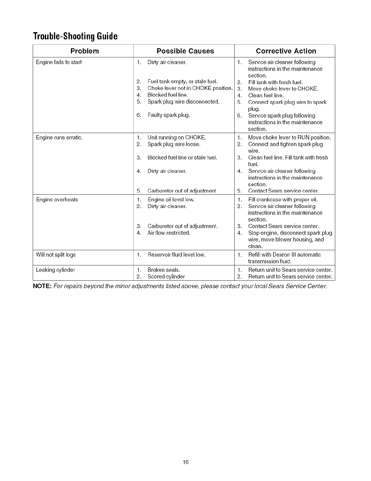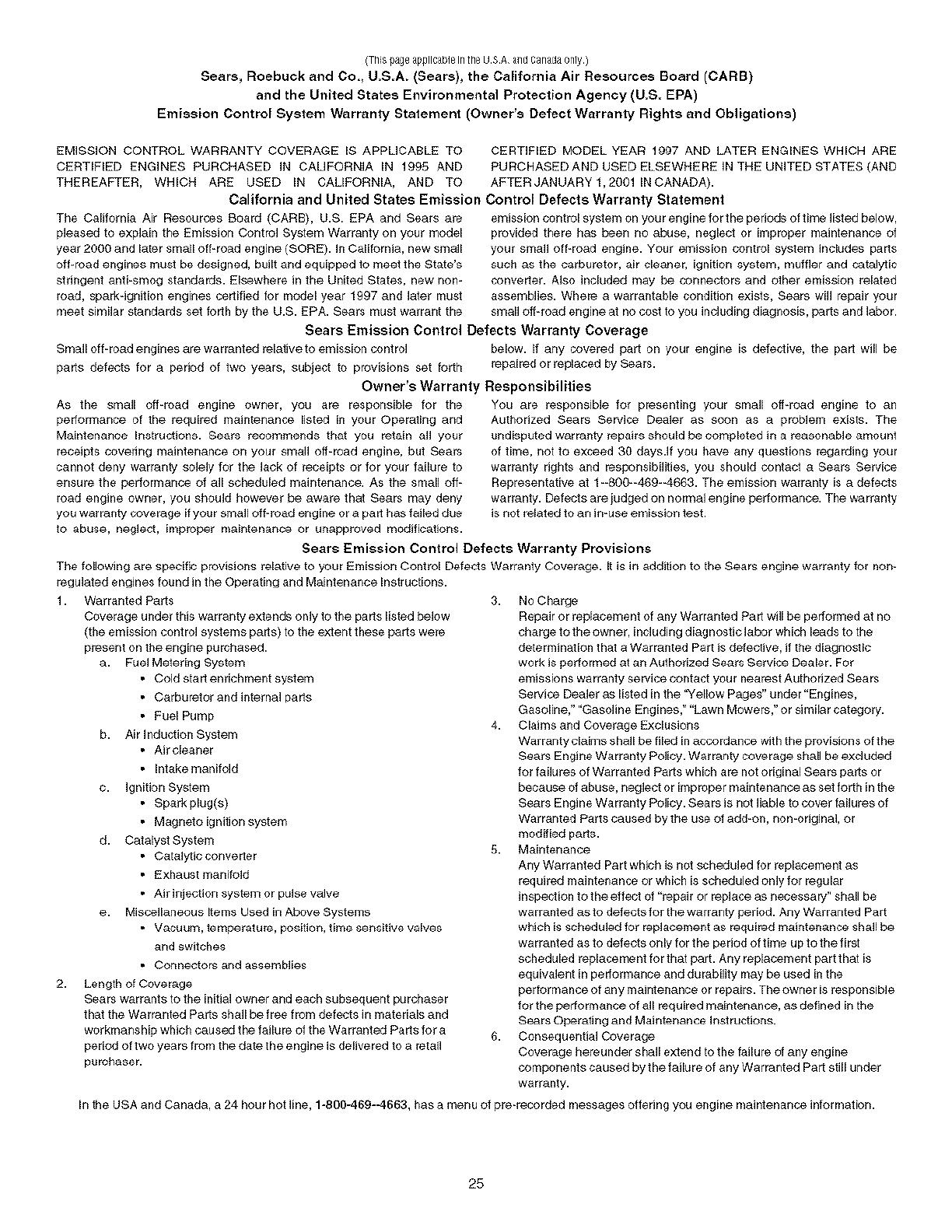 according to the instructions to the operator's manual, Sears will repair or replace free of charge any parts found