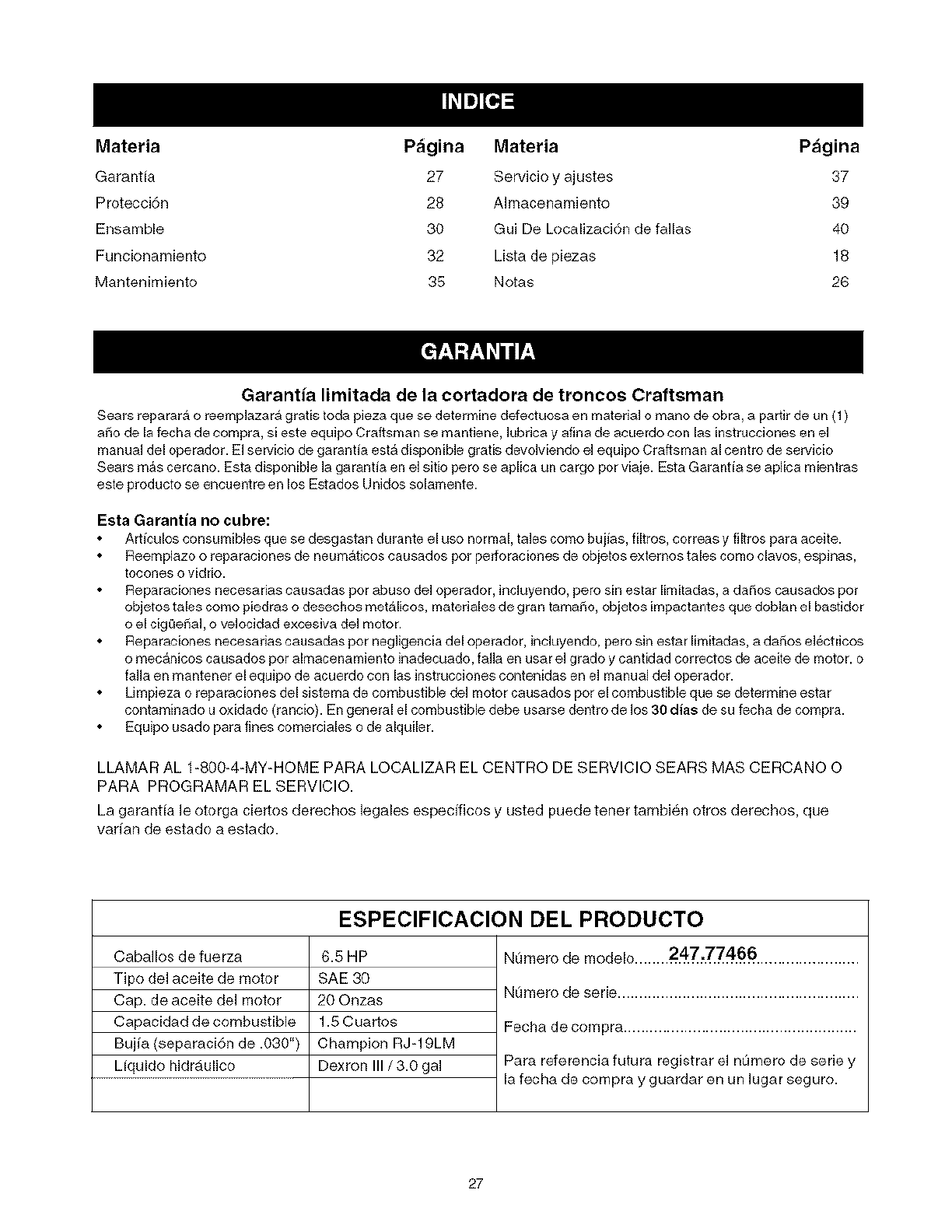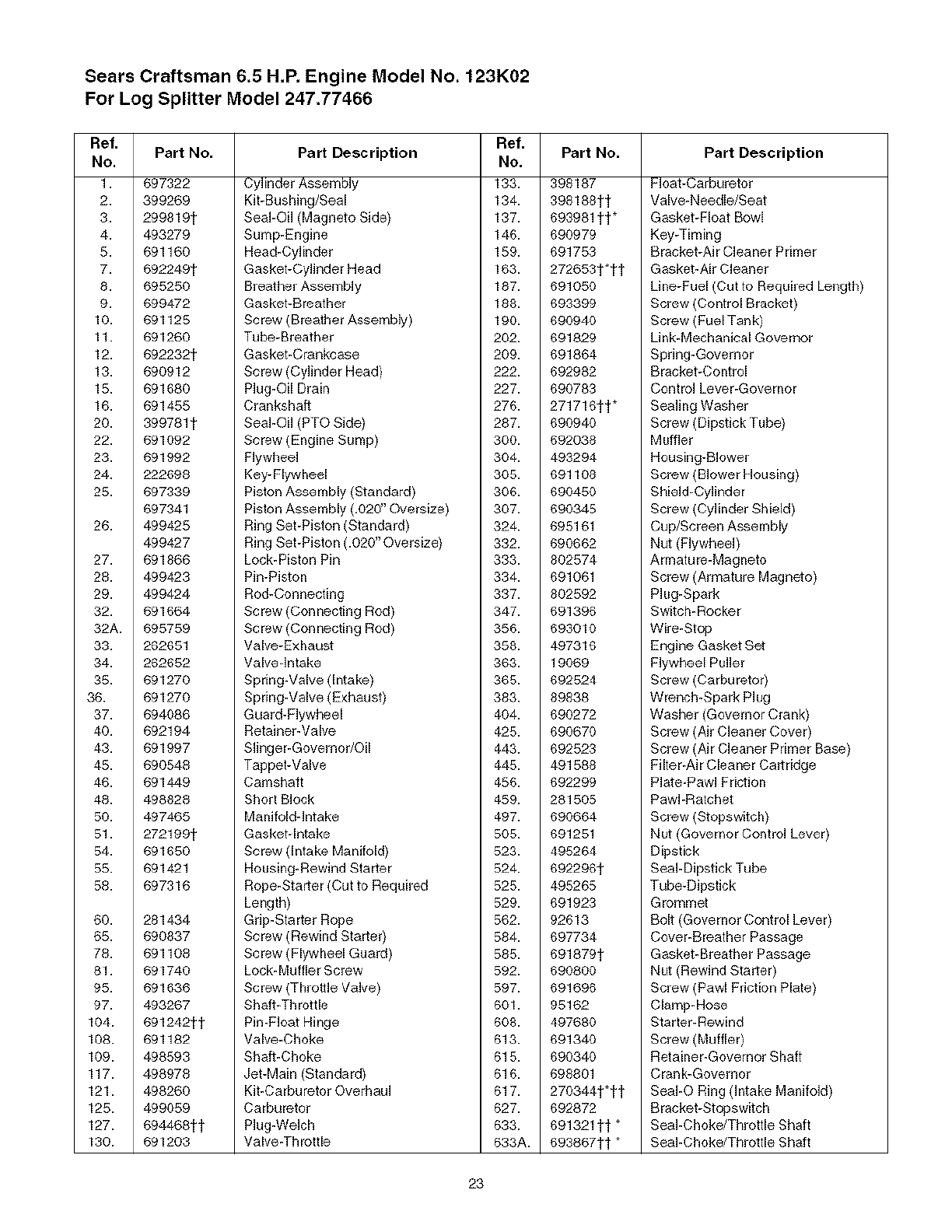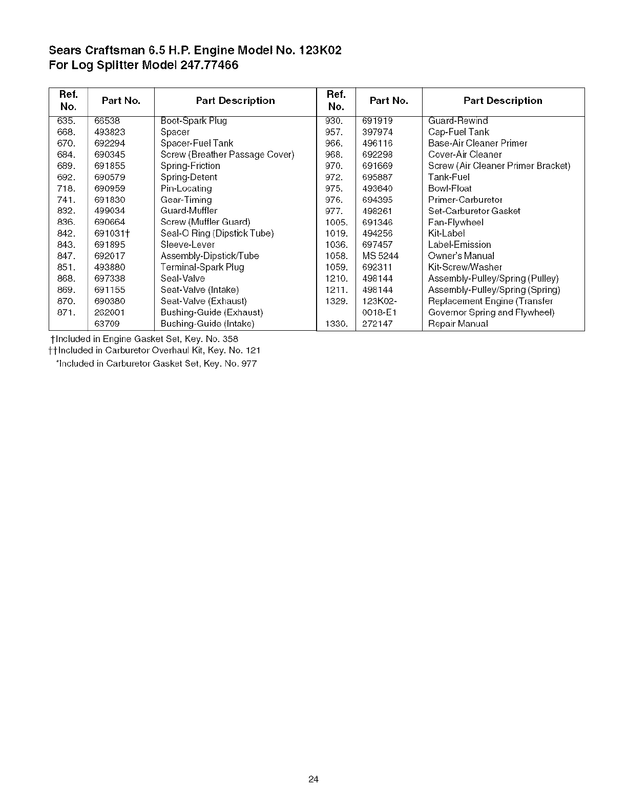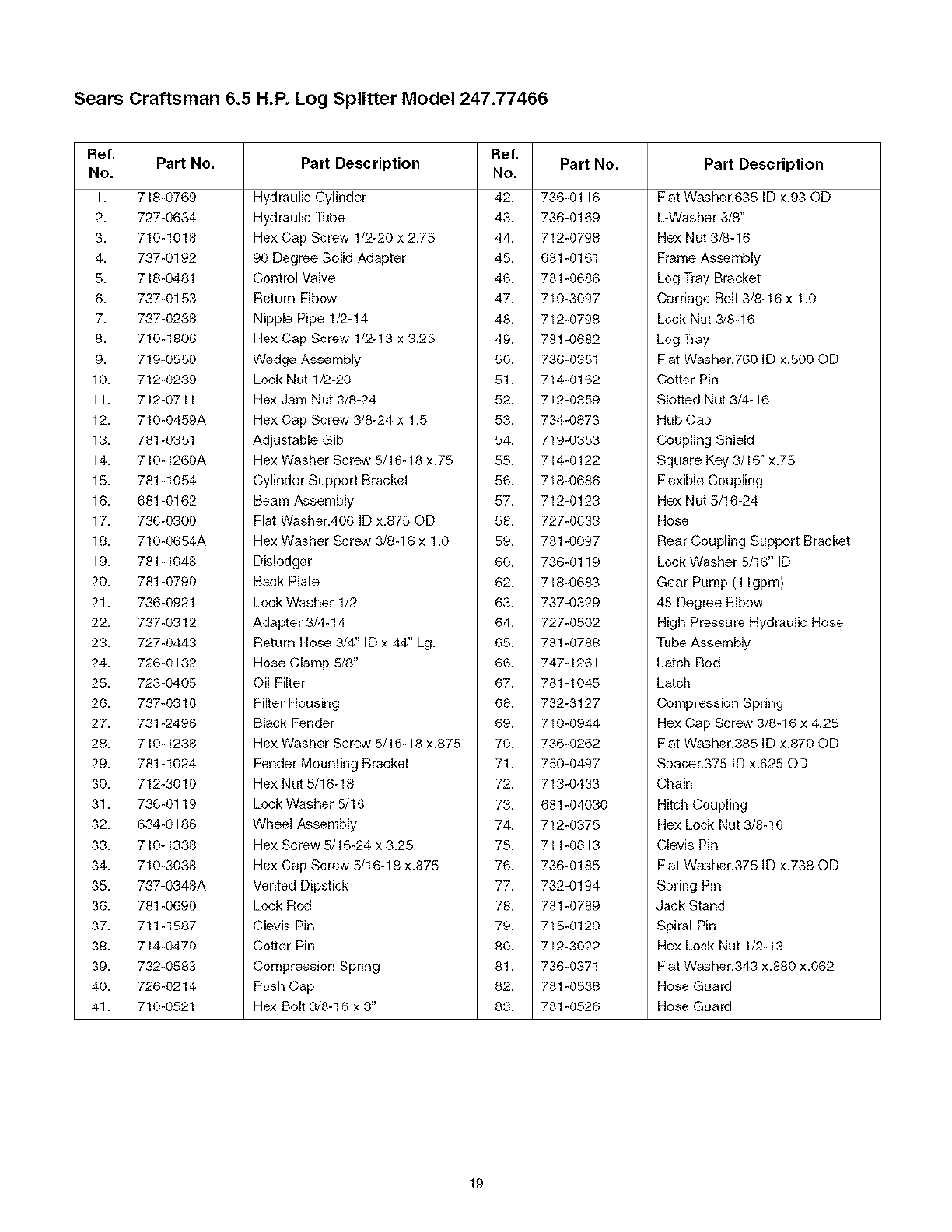 User Manual: Craftsman 247774660 247774660 CRAFTSMAN LOG SPLITTER - Manuals and Guides View the owners manual for your CRAFTSMAN LOG SPLITTER #247774660. Home:Lawn & Garden Parts:Craftsman Parts:Craftsman LOG SPLITTER Manual