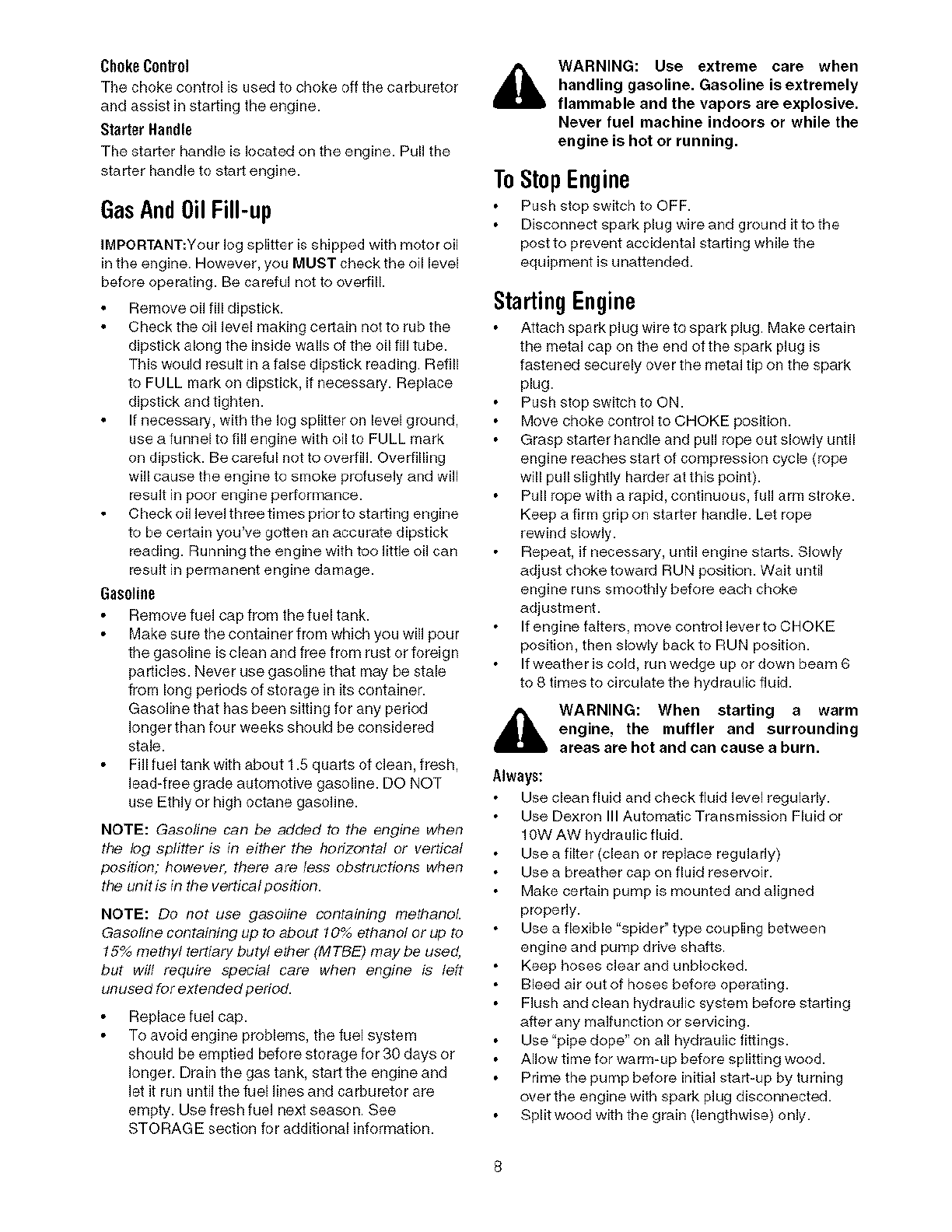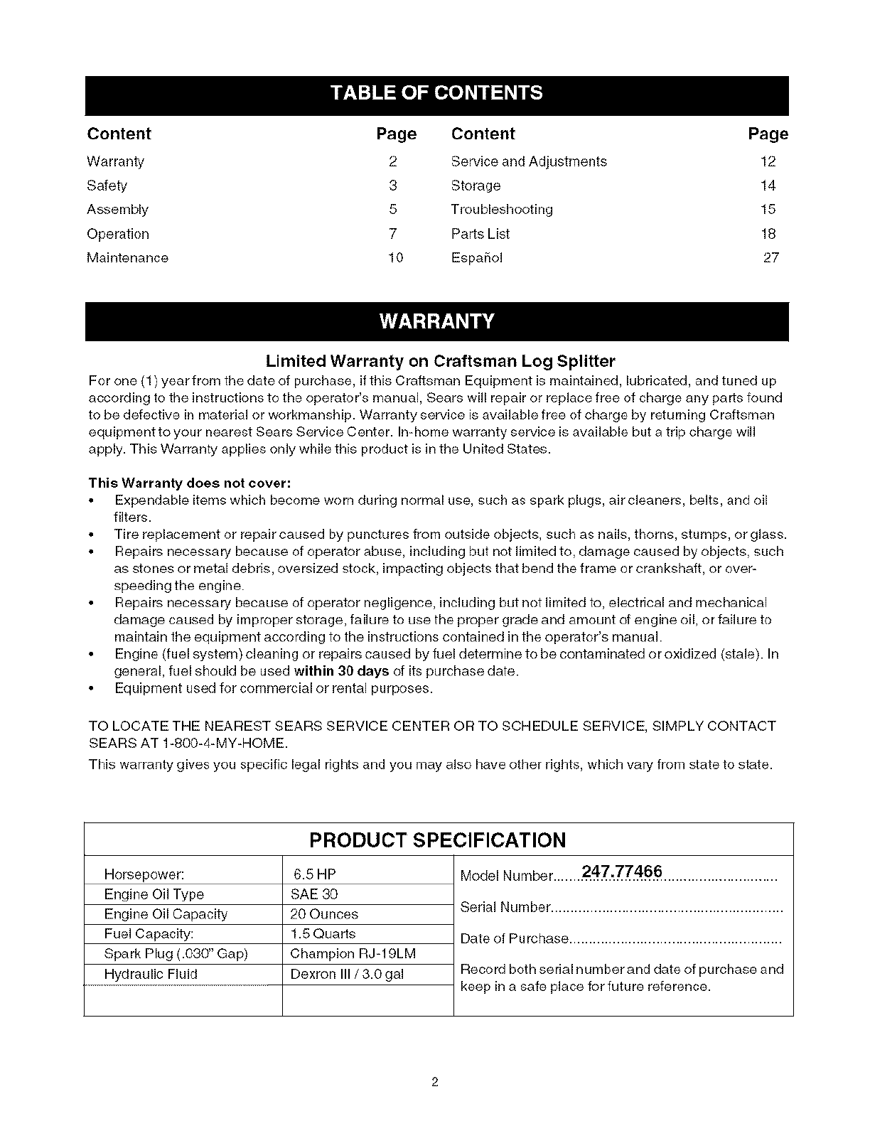 Craftsman 247774660 User Manual LOG SPLITTER Manuals And Guides L0602282