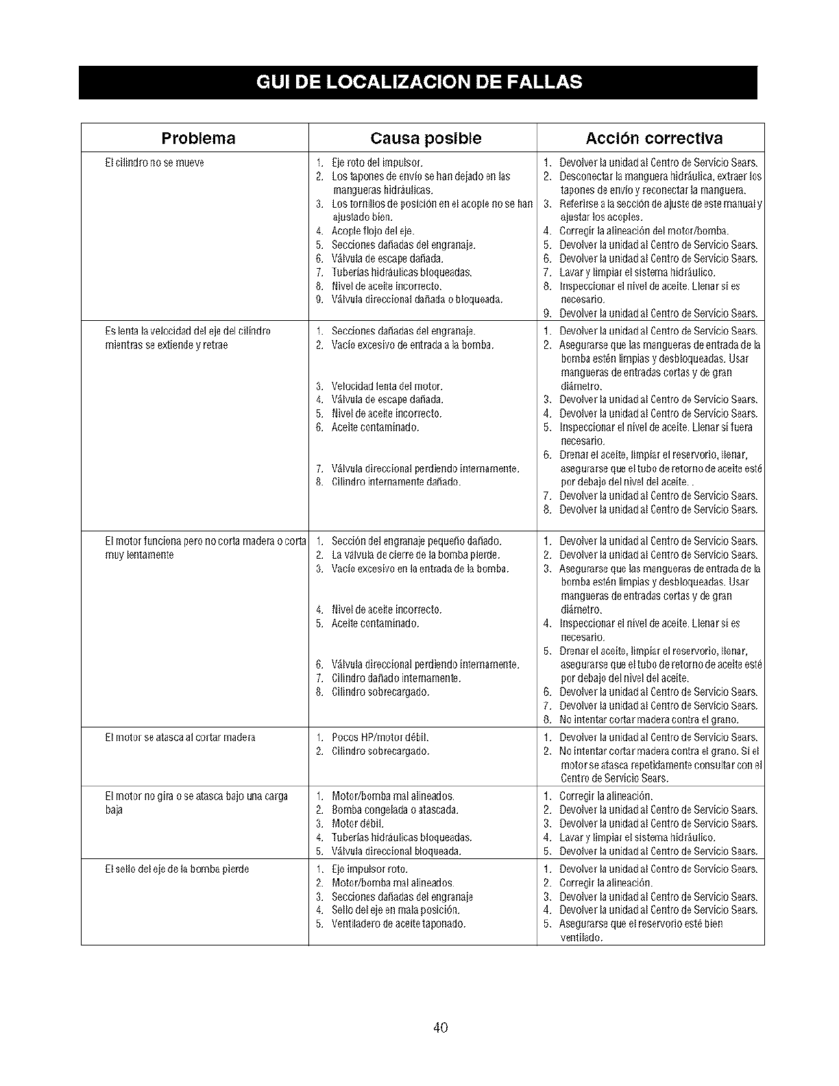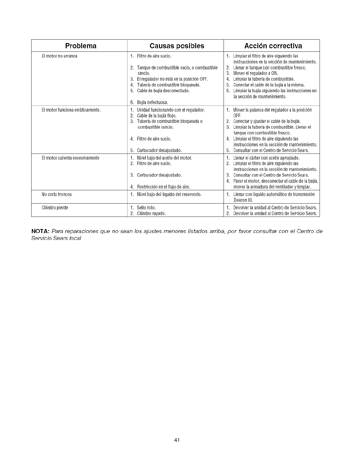 productos a veces puede requerir de reparaciones. Es