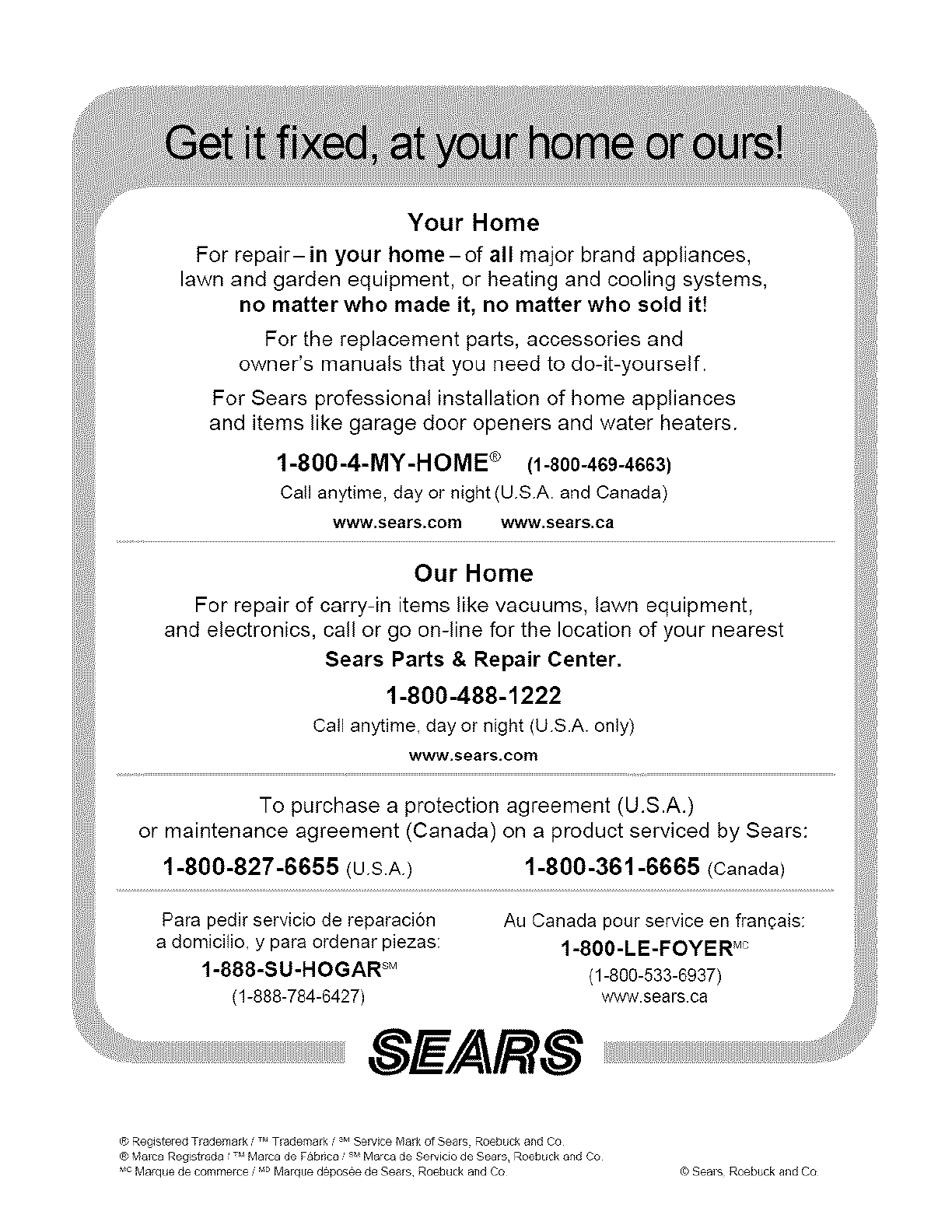 ® Registered Trademark _ Tlademark _s Se_/}ce ?Vrark of S_ars Roebl ck and Co