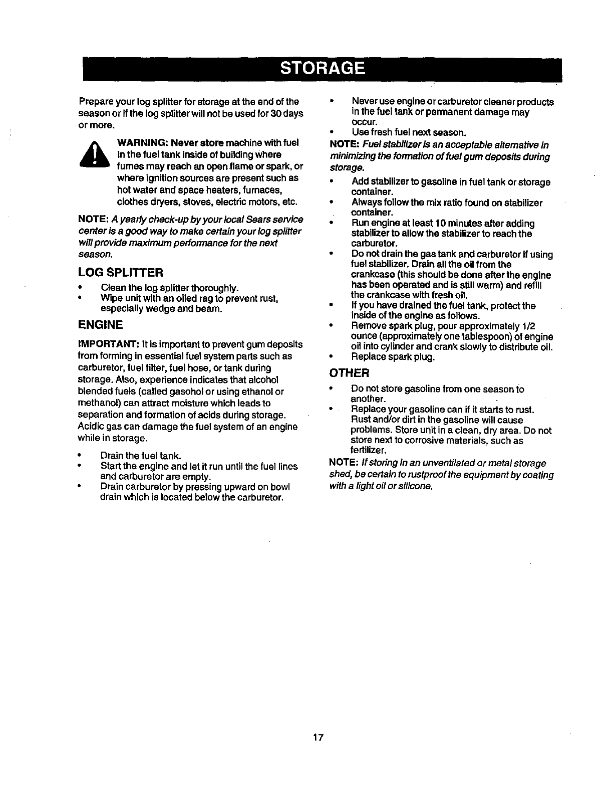 Off-Season Storage ........................................... 17