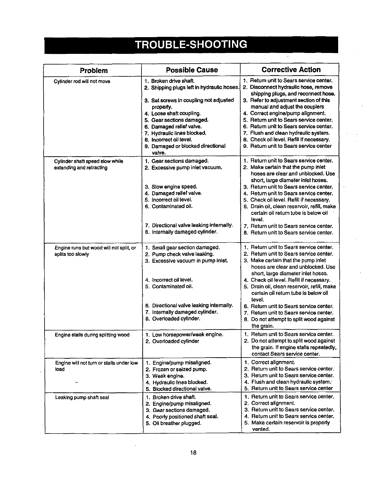 according to the operating and maintenance instructions in the operator's manual, Sears will repair, free of