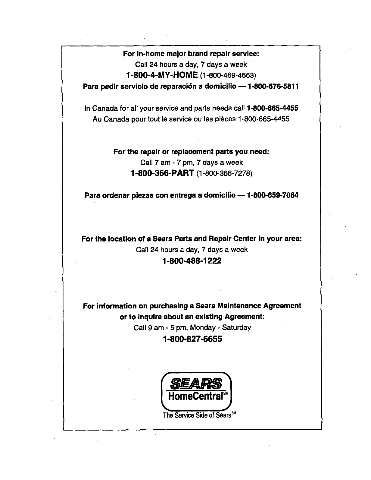 For information on purchasing e Sears Maintenance Agreement