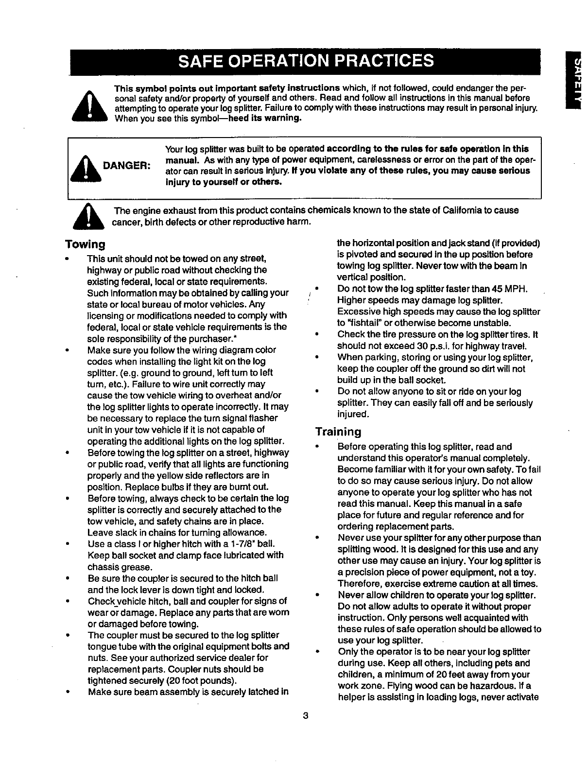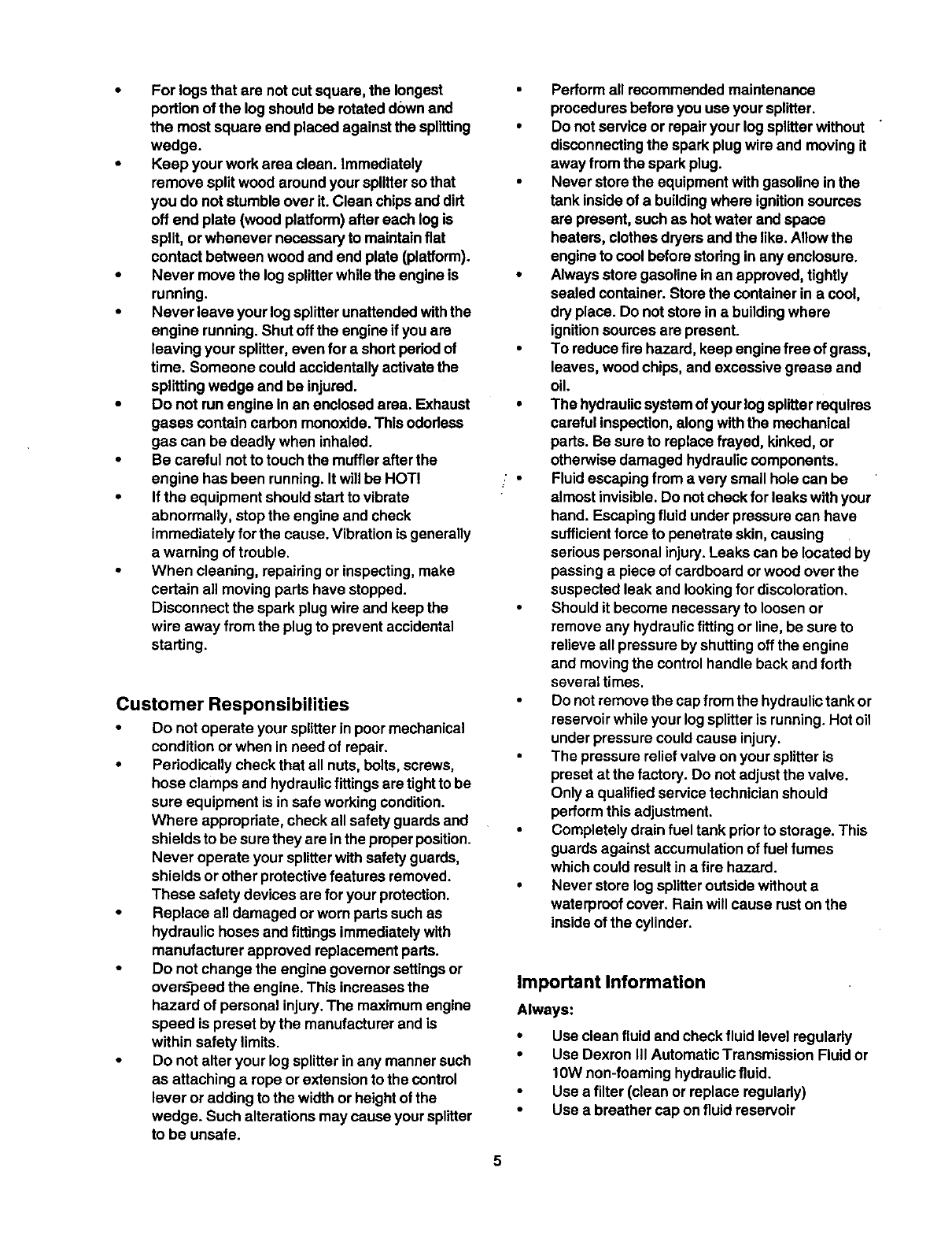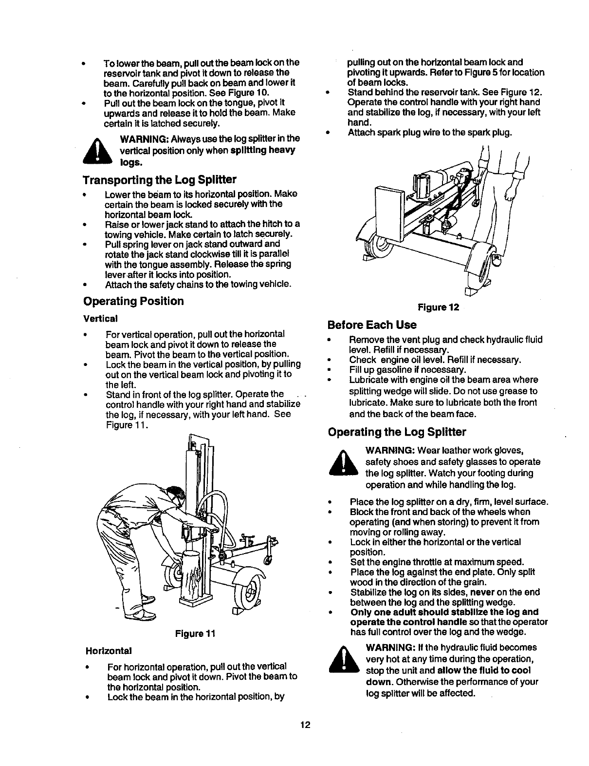 attempting to operate your log splitter. Failure to comply with these instructions may result in personal injury.