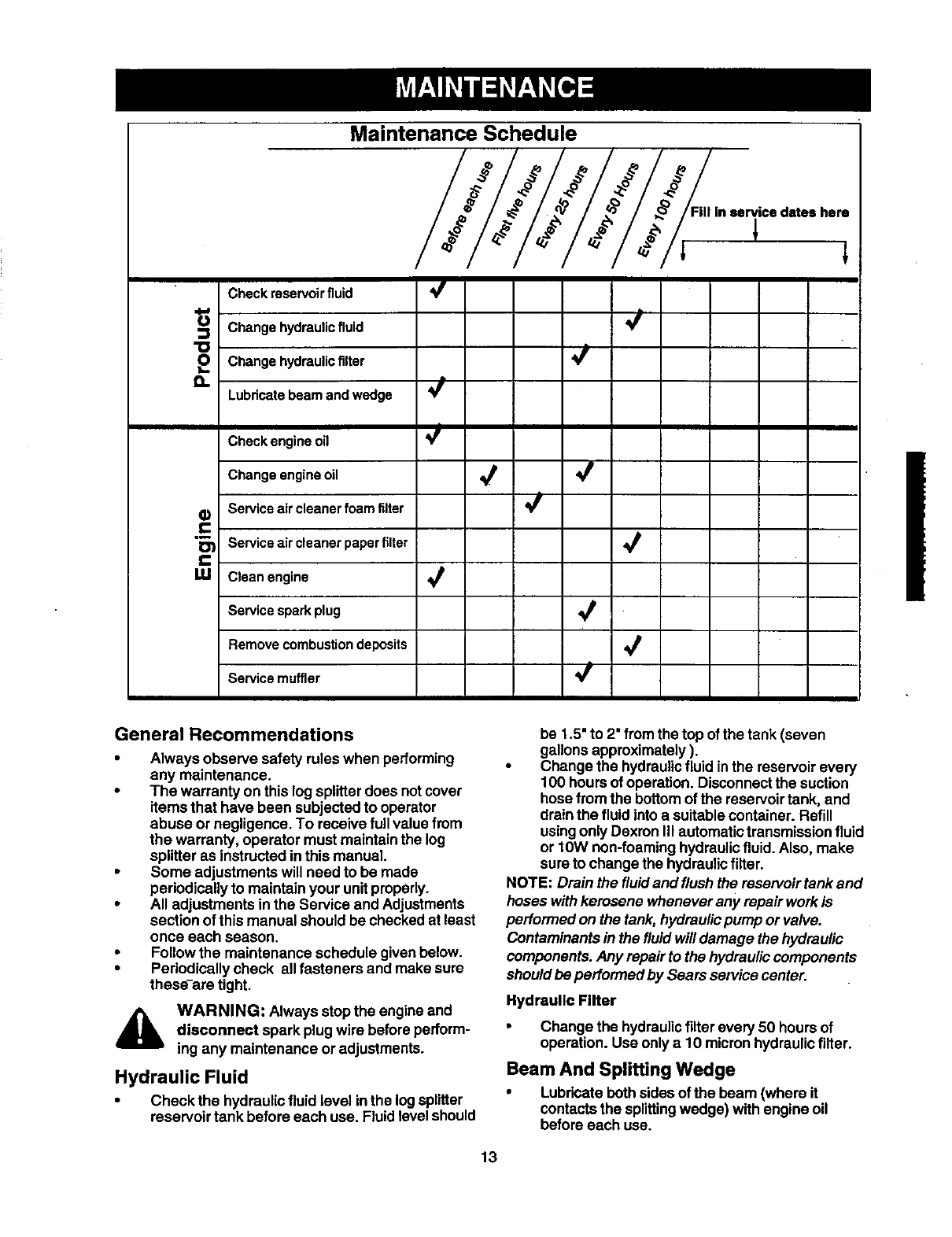 ONE-YEAR WARRANTY ON CRAFTSMAN LOG SPLI'I-I'ER