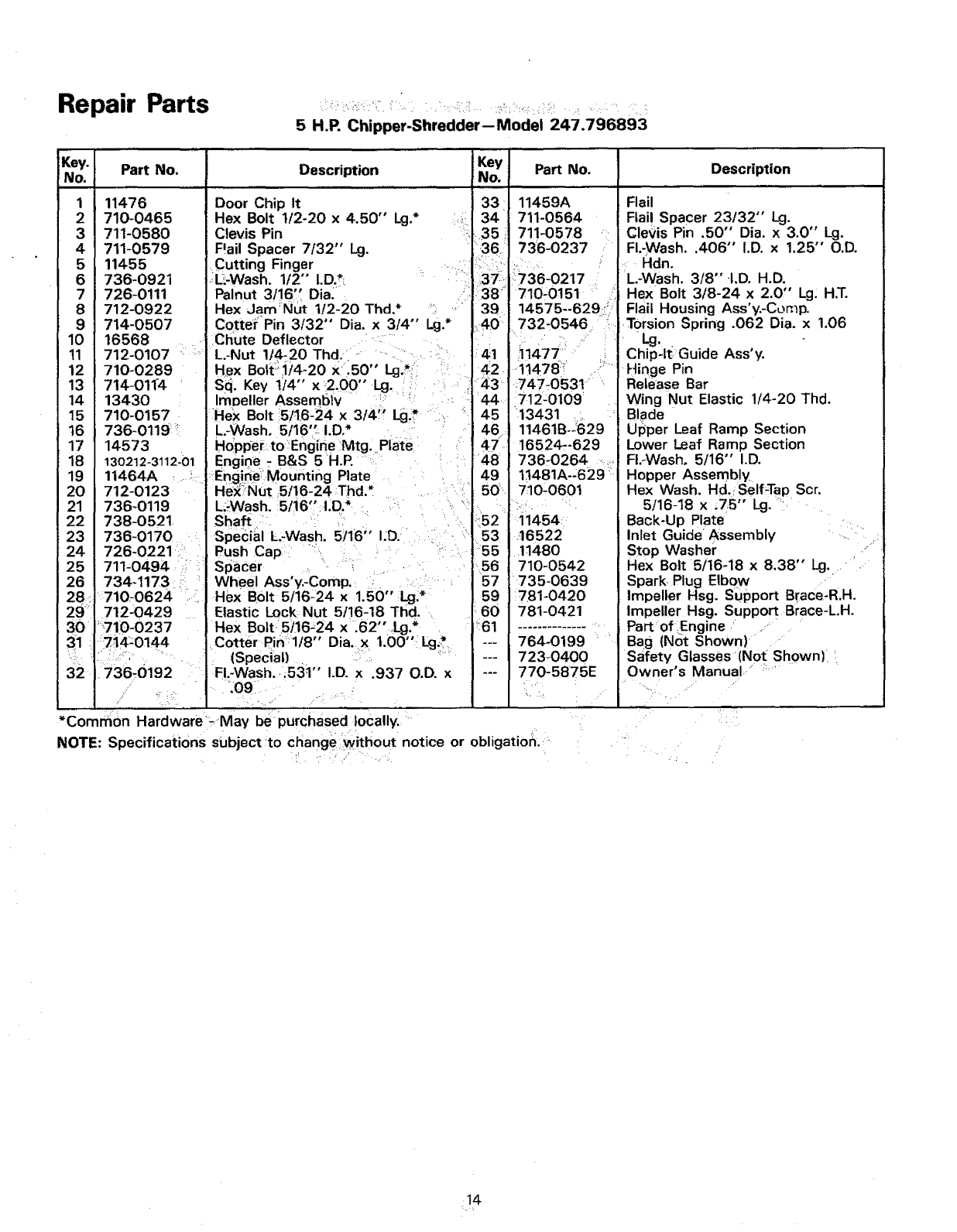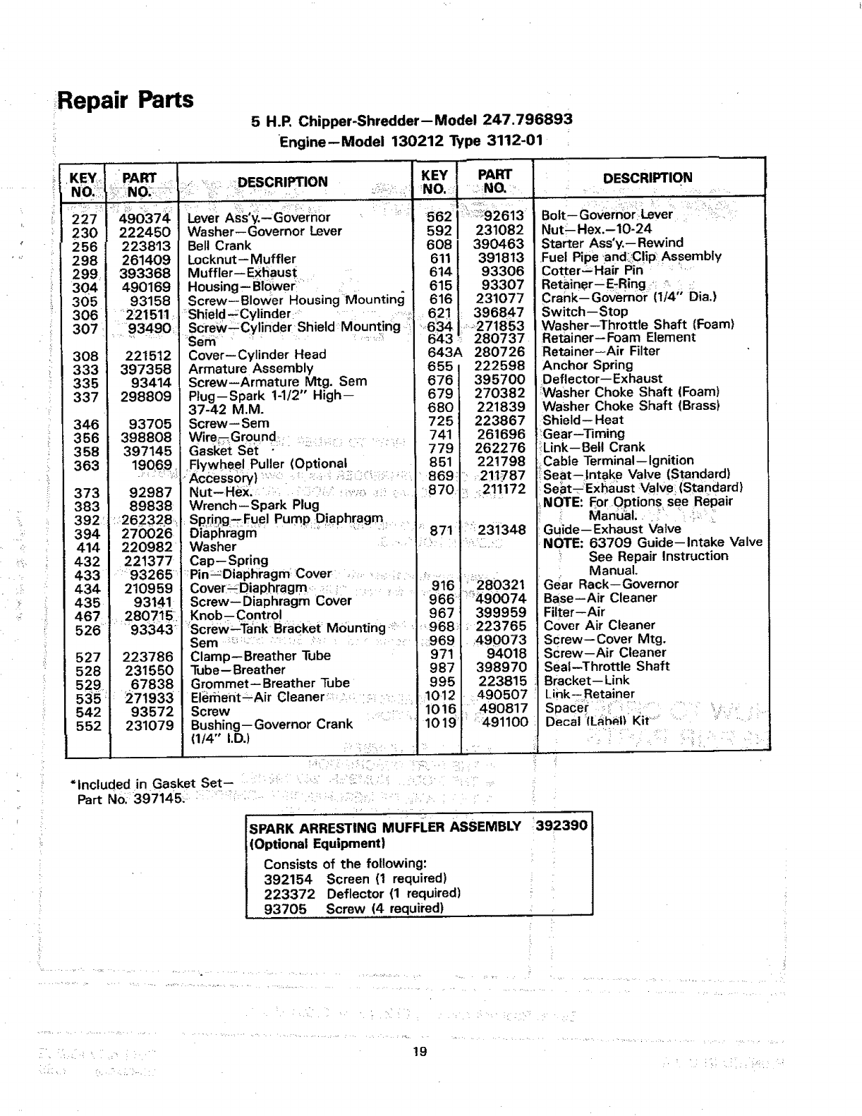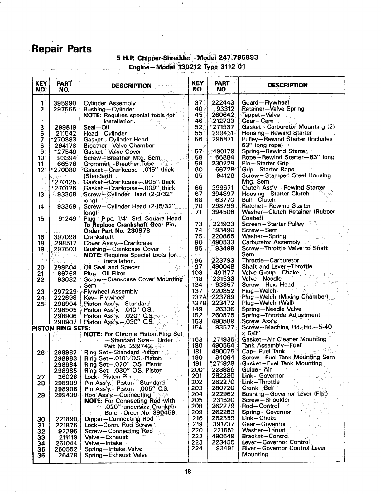 or Repair Parts for your CHIPPER!SHREDDER;. "