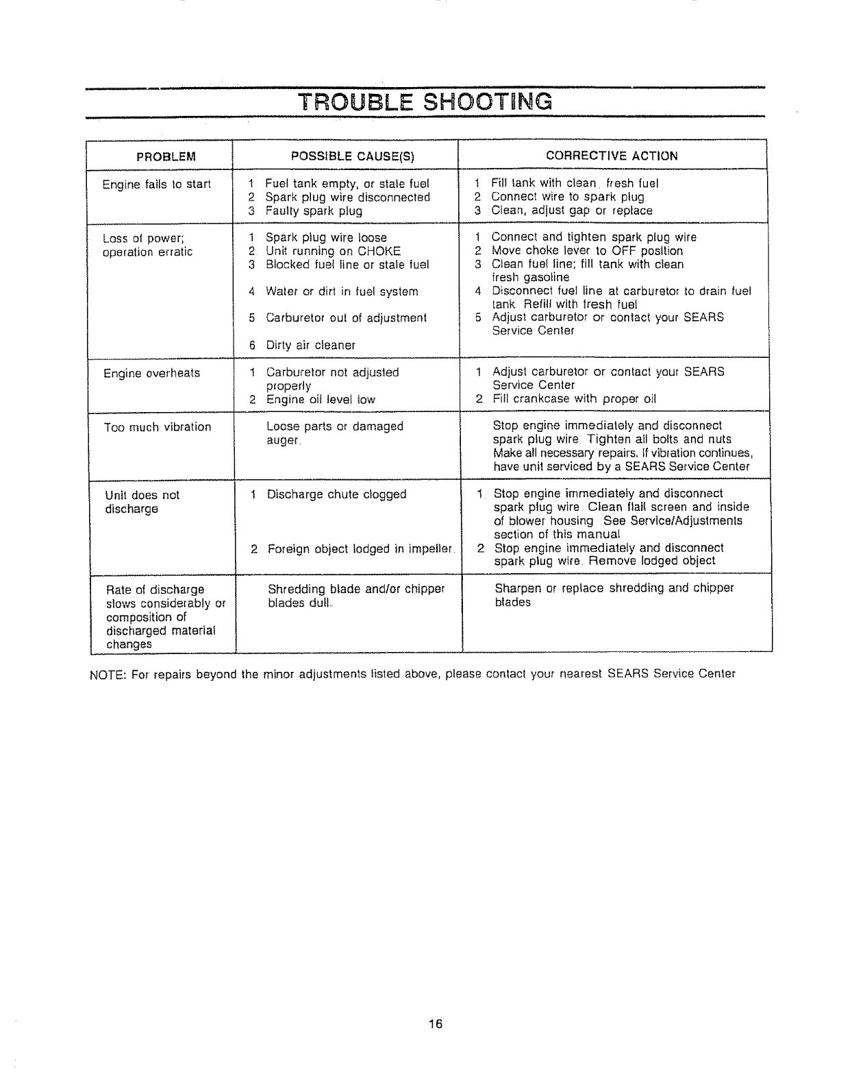 All parts listed herein may be ordered through Sears,