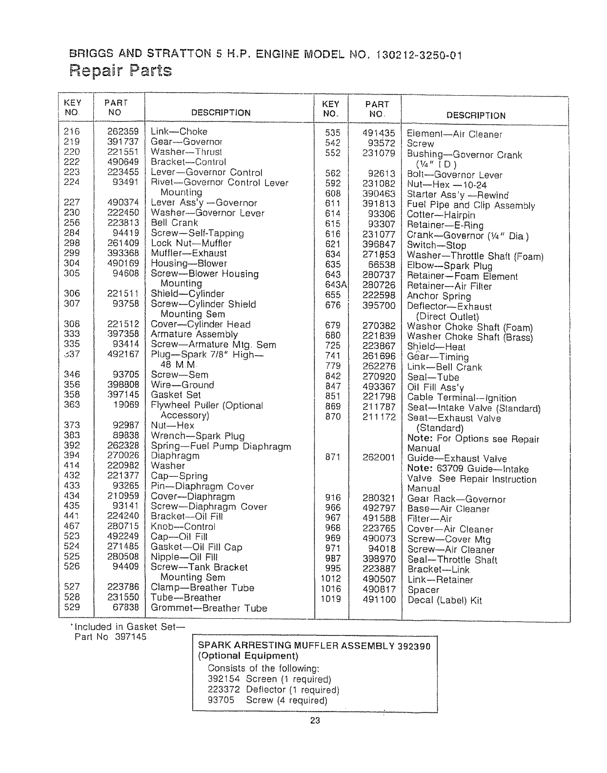 " ENGINE MODEL NO. - 130212-3250-01