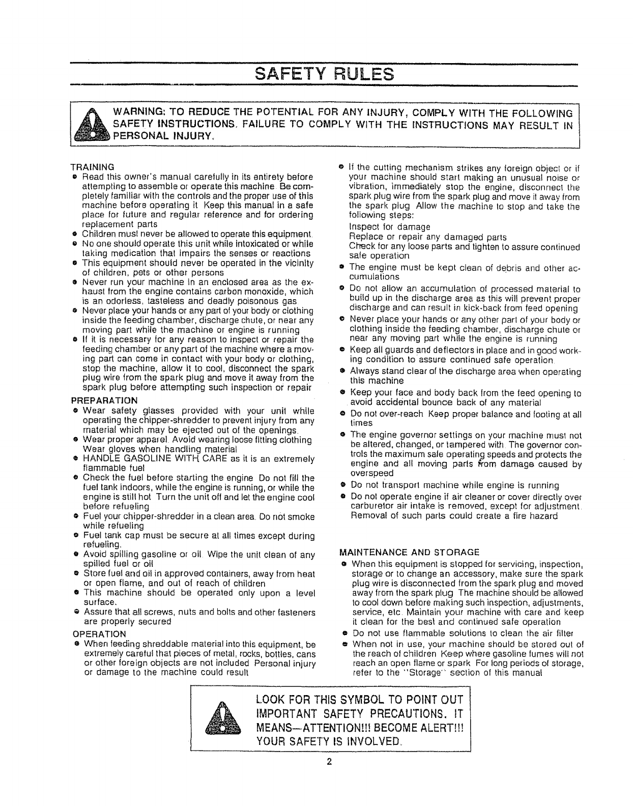 operating the chipper-shredder to prevent injury from any