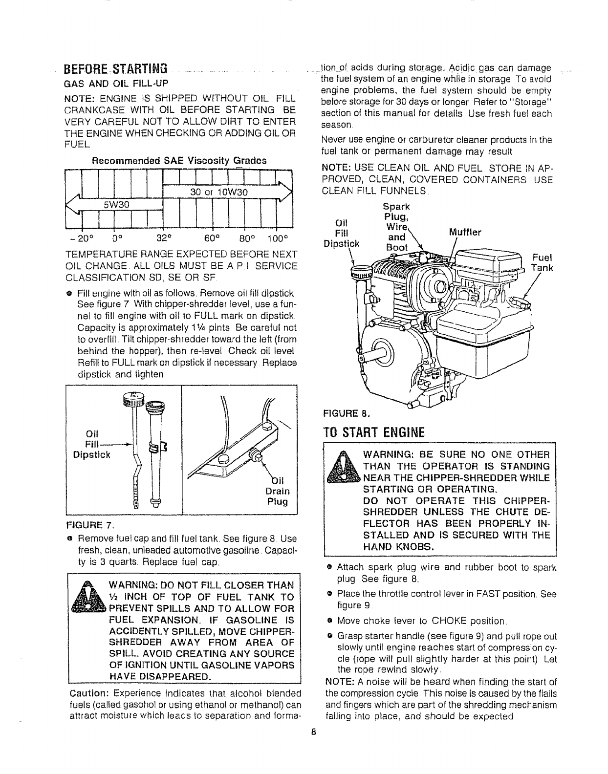 • Fuel your chipper-shredder in a clean area. Do not smoke