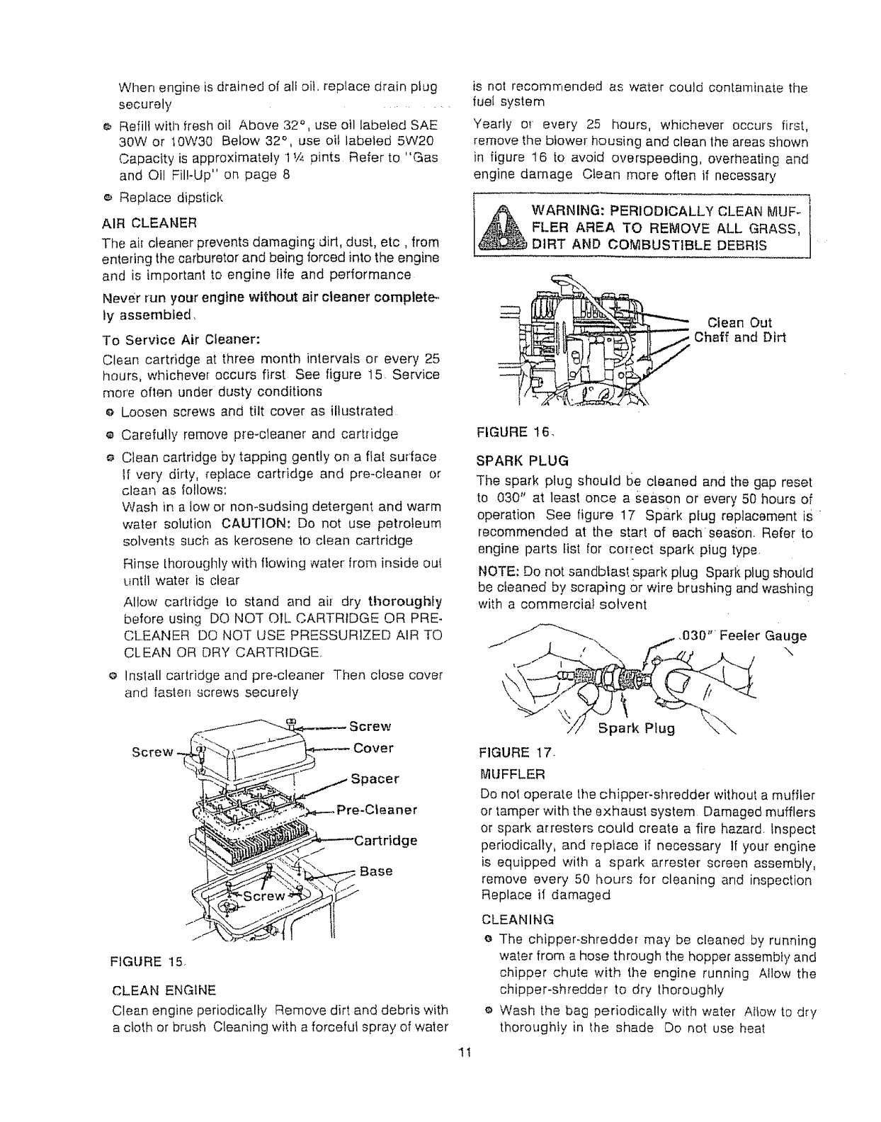 I The engine must be kept clean of debris and other ac-