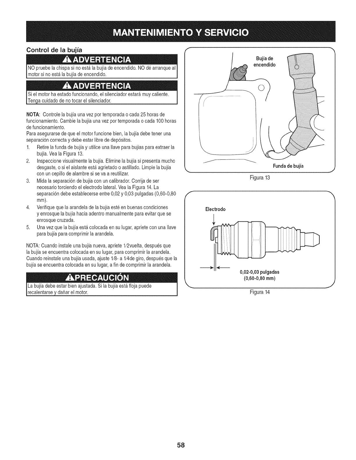 Para los motores con desplazamiento inferior a 225 cc, Categoria C = 125 horas, B = 250 horas y A = 500 horas.