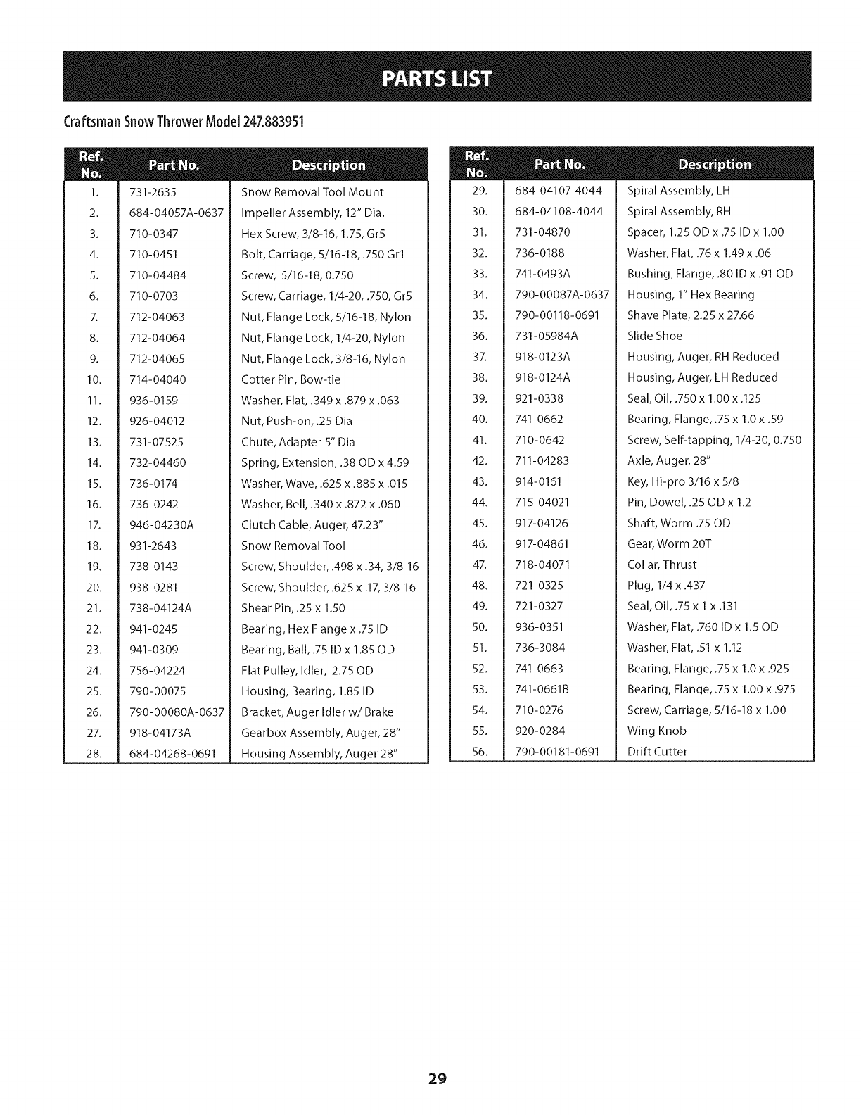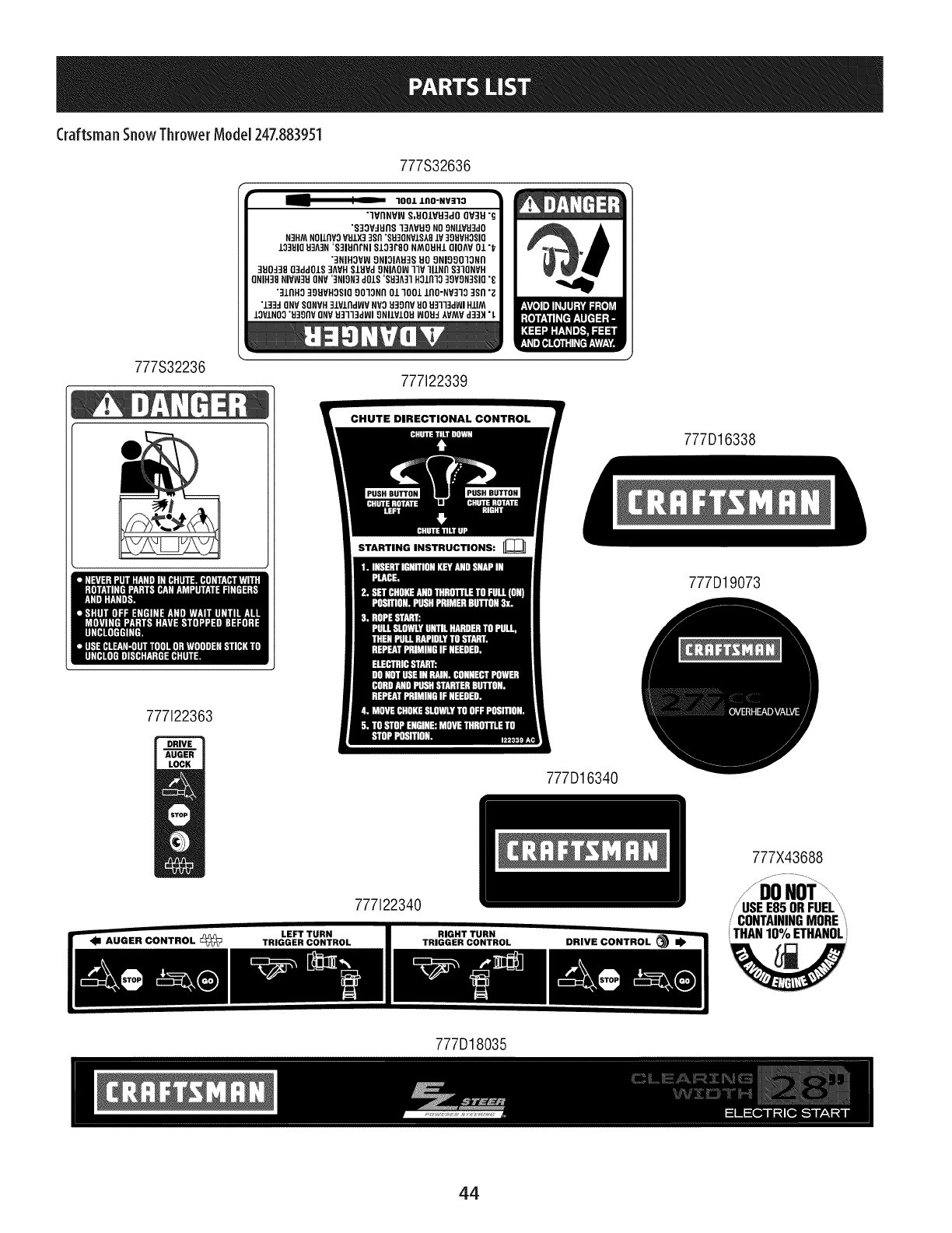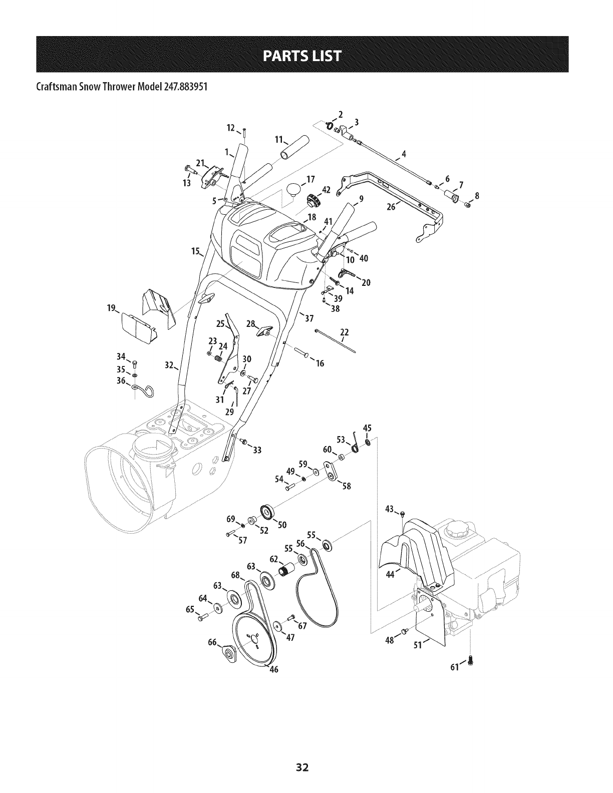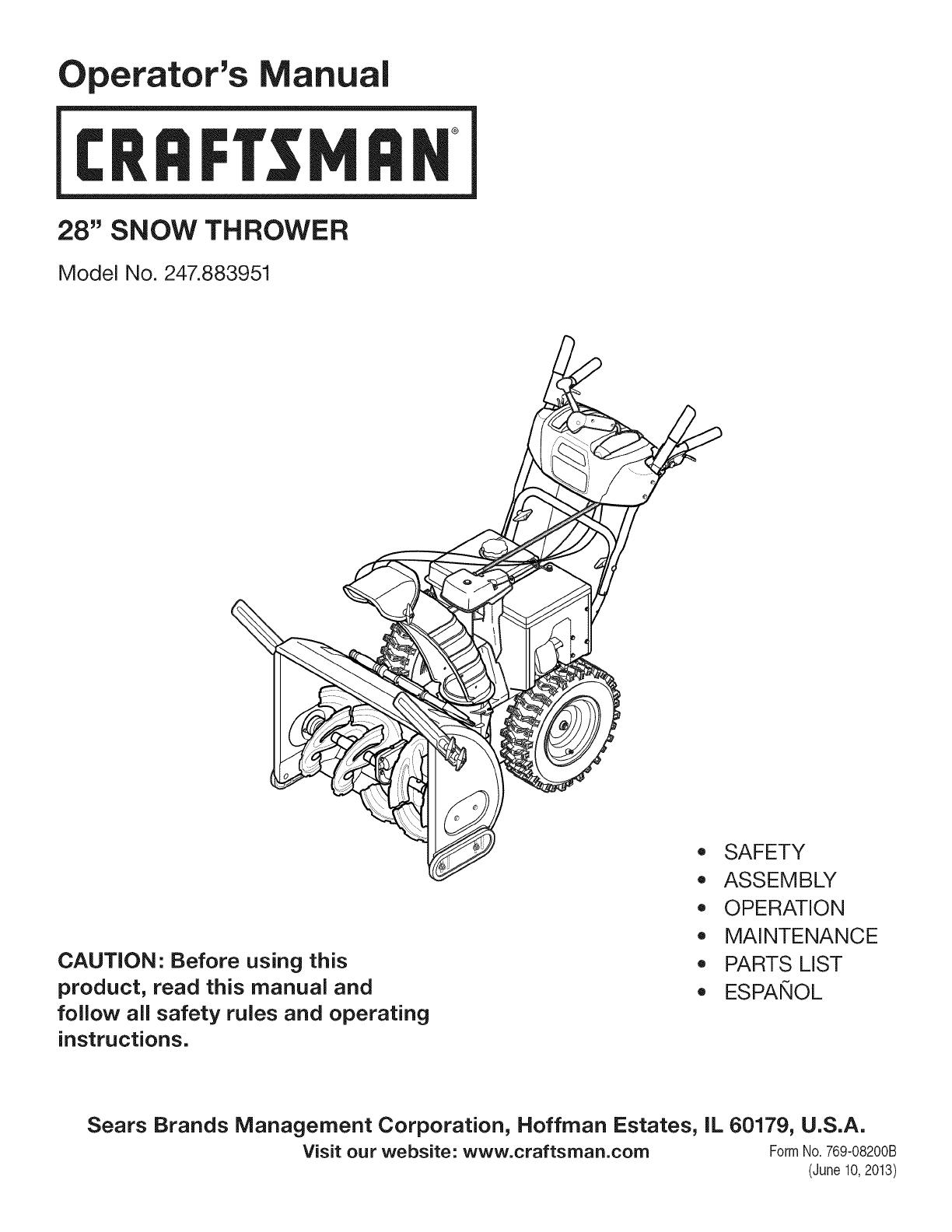 User Manual: Craftsman 247883951 247883951 CRAFTSMAN SNOW THROWER - Manuals and Guides View the owners manual for your CRAFTSMAN SNOW THROWER #247883951. Home:Lawn & Garden Parts:Craftsman Parts:Craftsman SNOW THROWER Manual