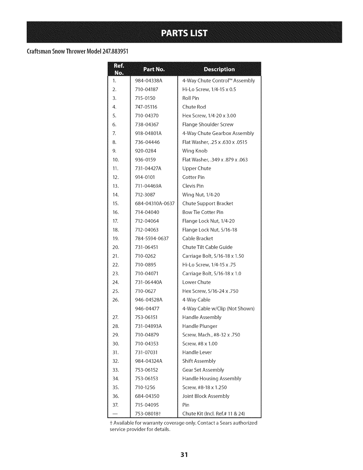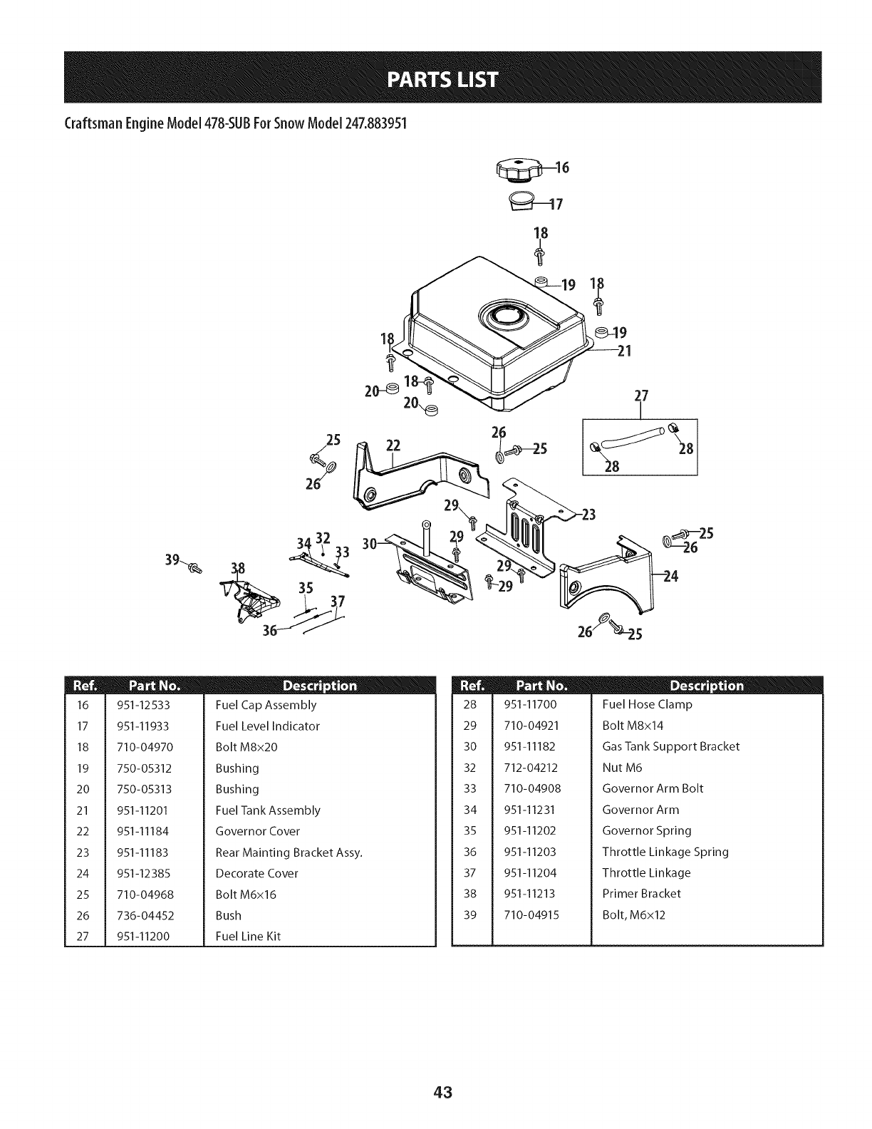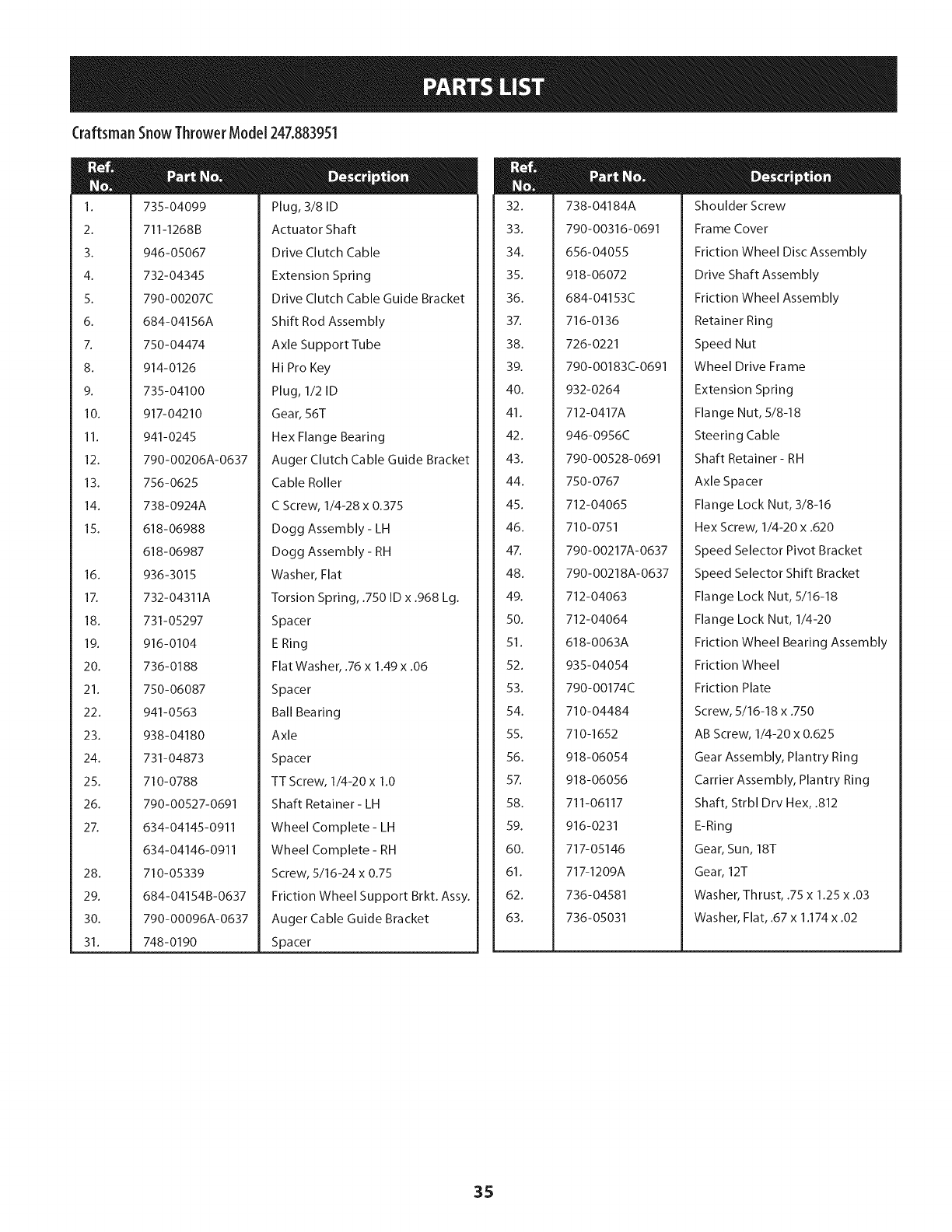 User Manual: Craftsman 247883951 247883951 CRAFTSMAN SNOW THROWER - Manuals and Guides View the owners manual for your CRAFTSMAN SNOW THROWER #247883951. Home:Lawn & Garden Parts:Craftsman Parts:Craftsman SNOW THROWER Manual